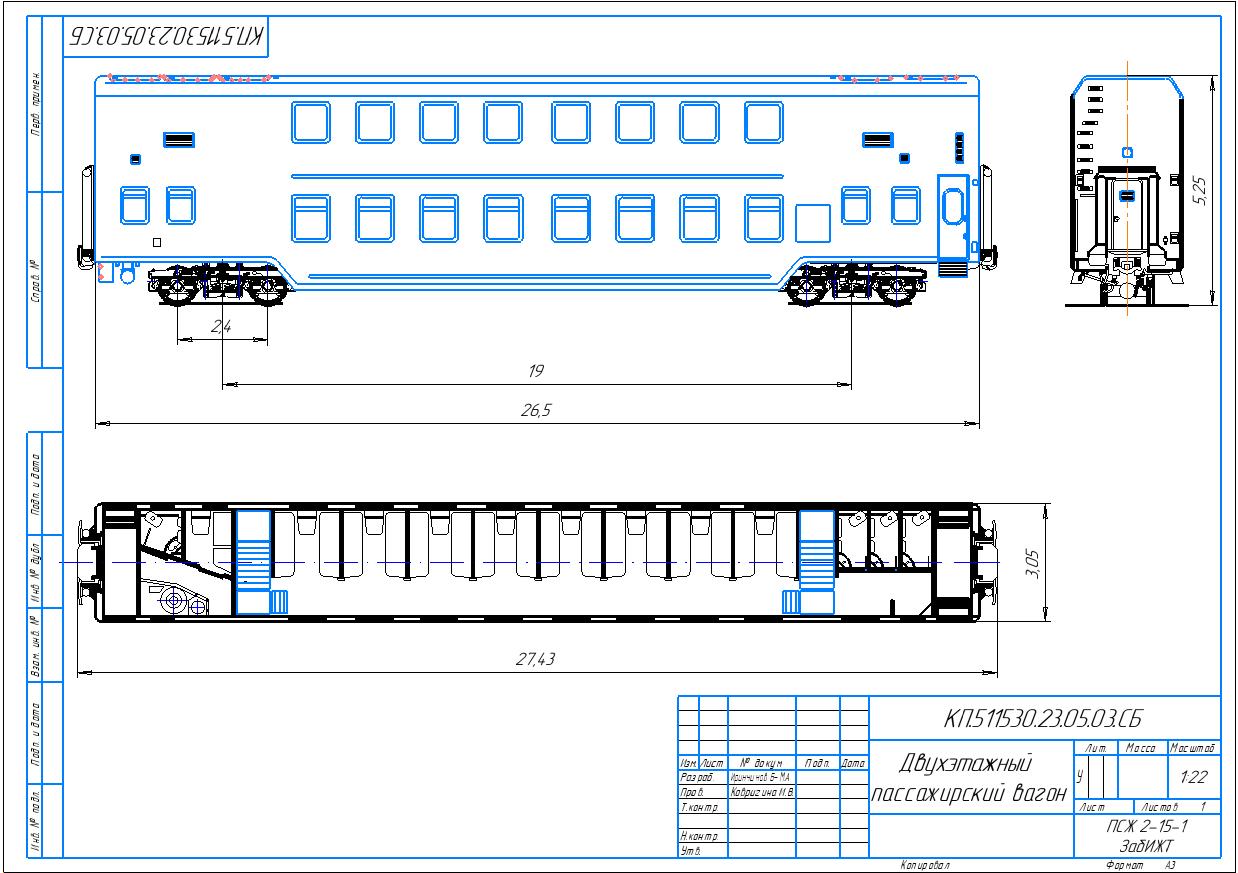 Двухэтажный вагон ТВЗ чертеж