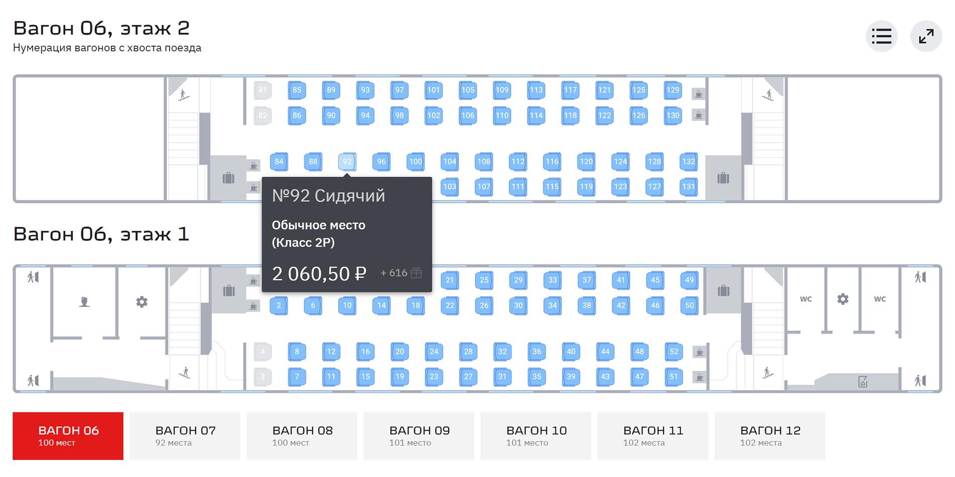 Схема вагона двухэтажного поезда Москва Адлер 104