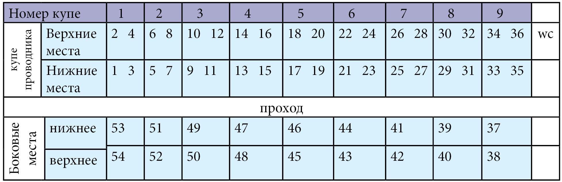 Схема мест в плацкартном вагоне