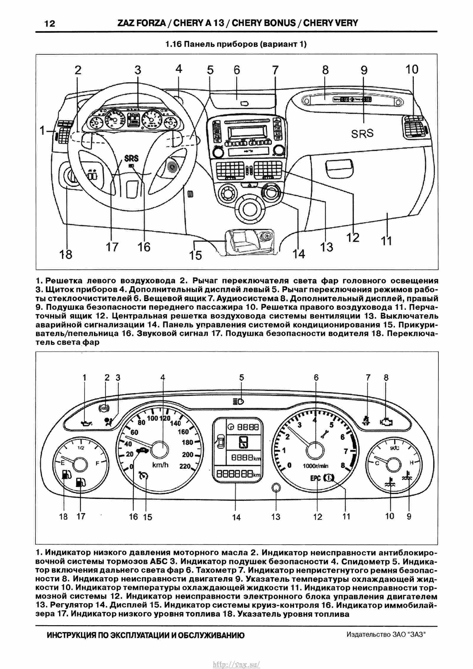 Приборная панель ЗАЗ Форза обозначение