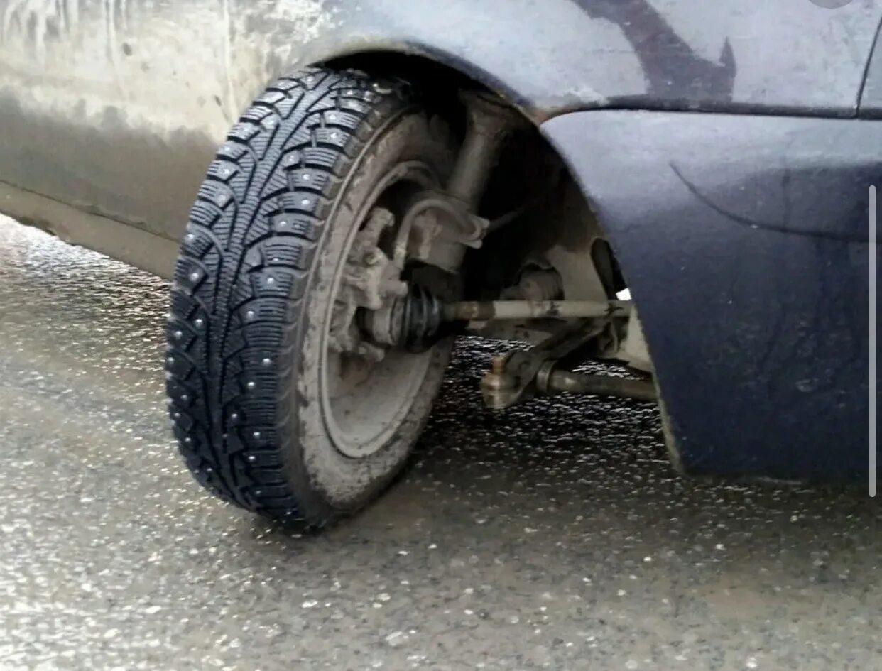 Нива Шевроле с бревном вместо колеса
