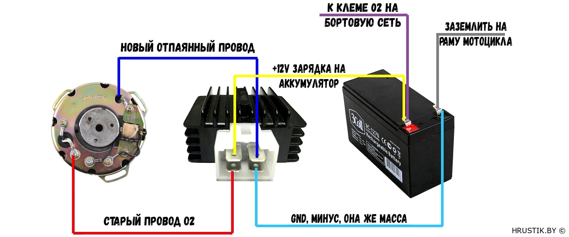 Схема подключения мотоцикла Минск 12 вольт