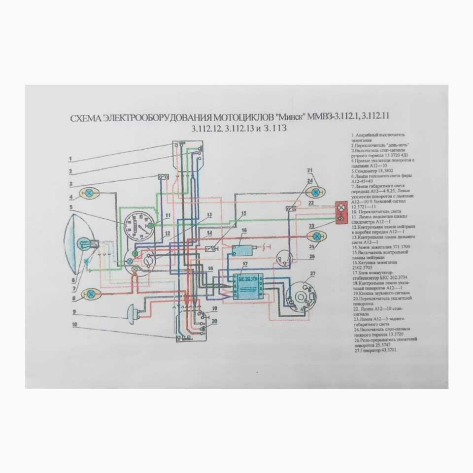 Схема проводки мотоцикла Минск 12 вольт