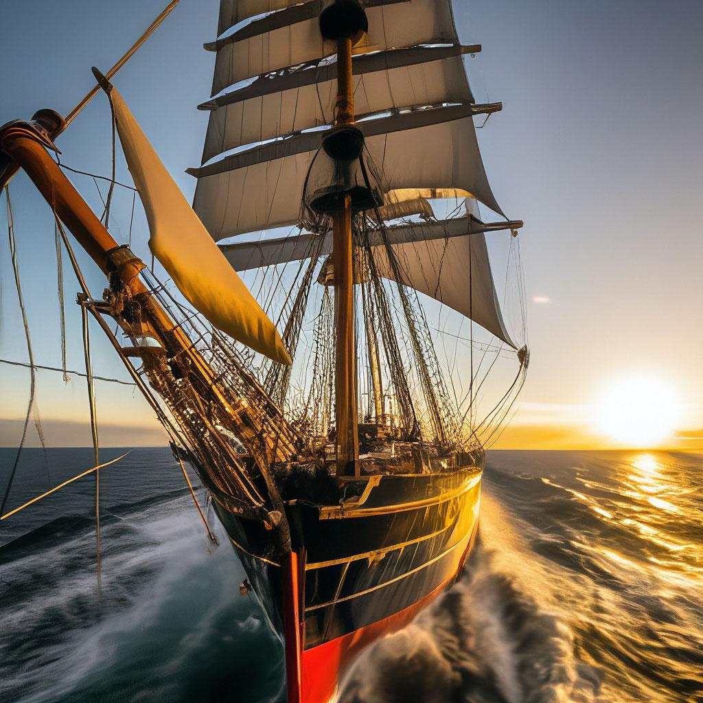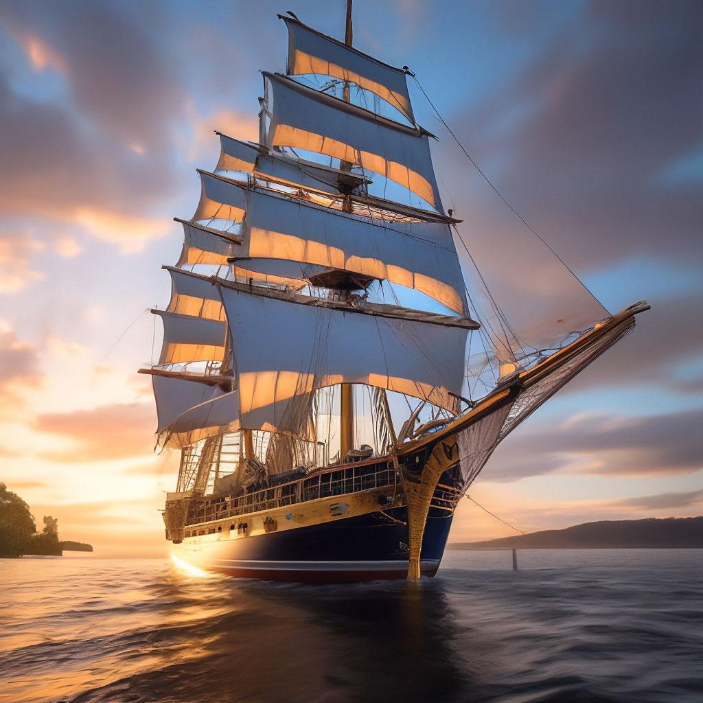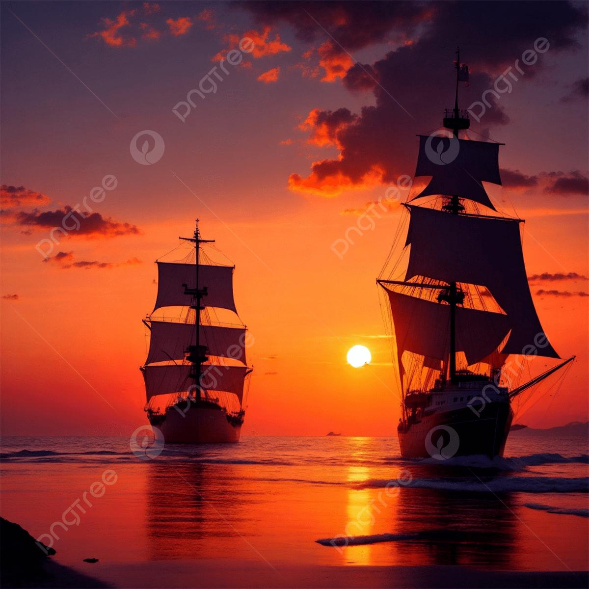 Корабль на фоне заката