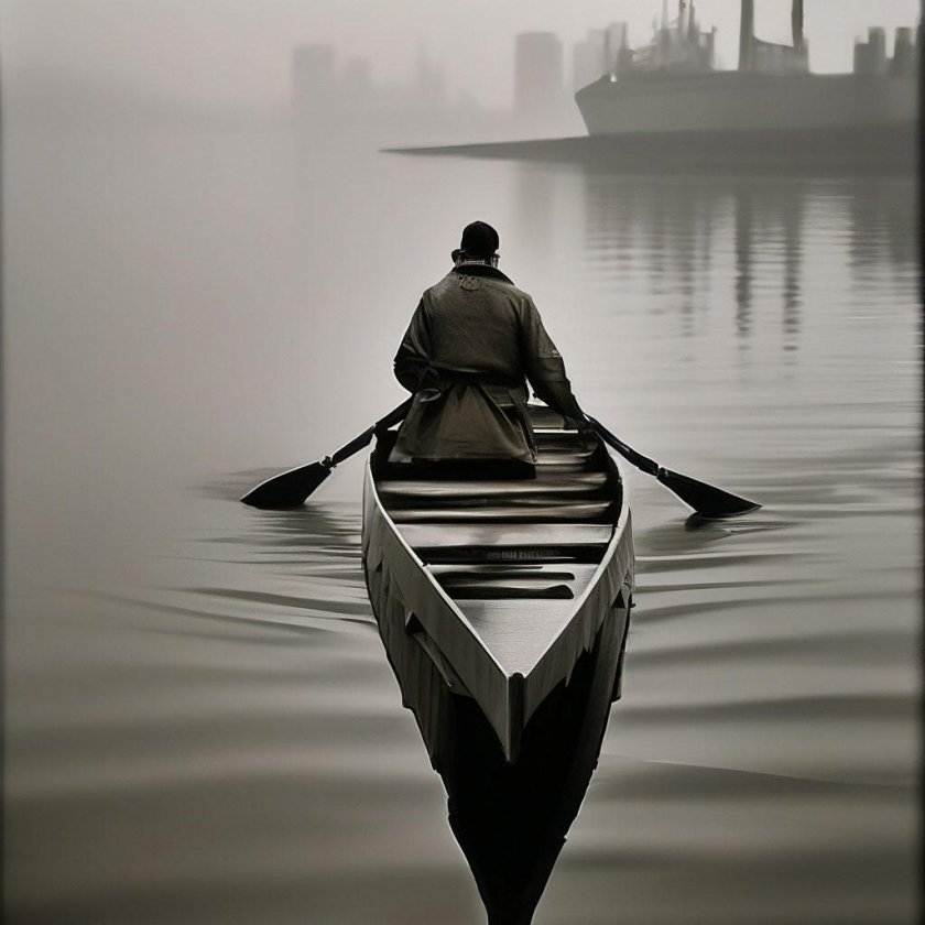 Древняя лодка на веслах