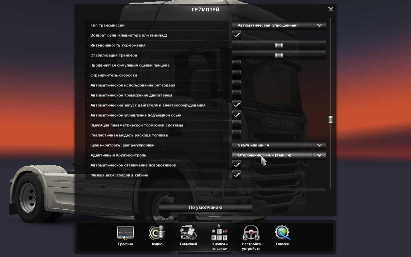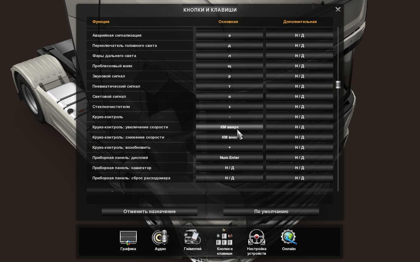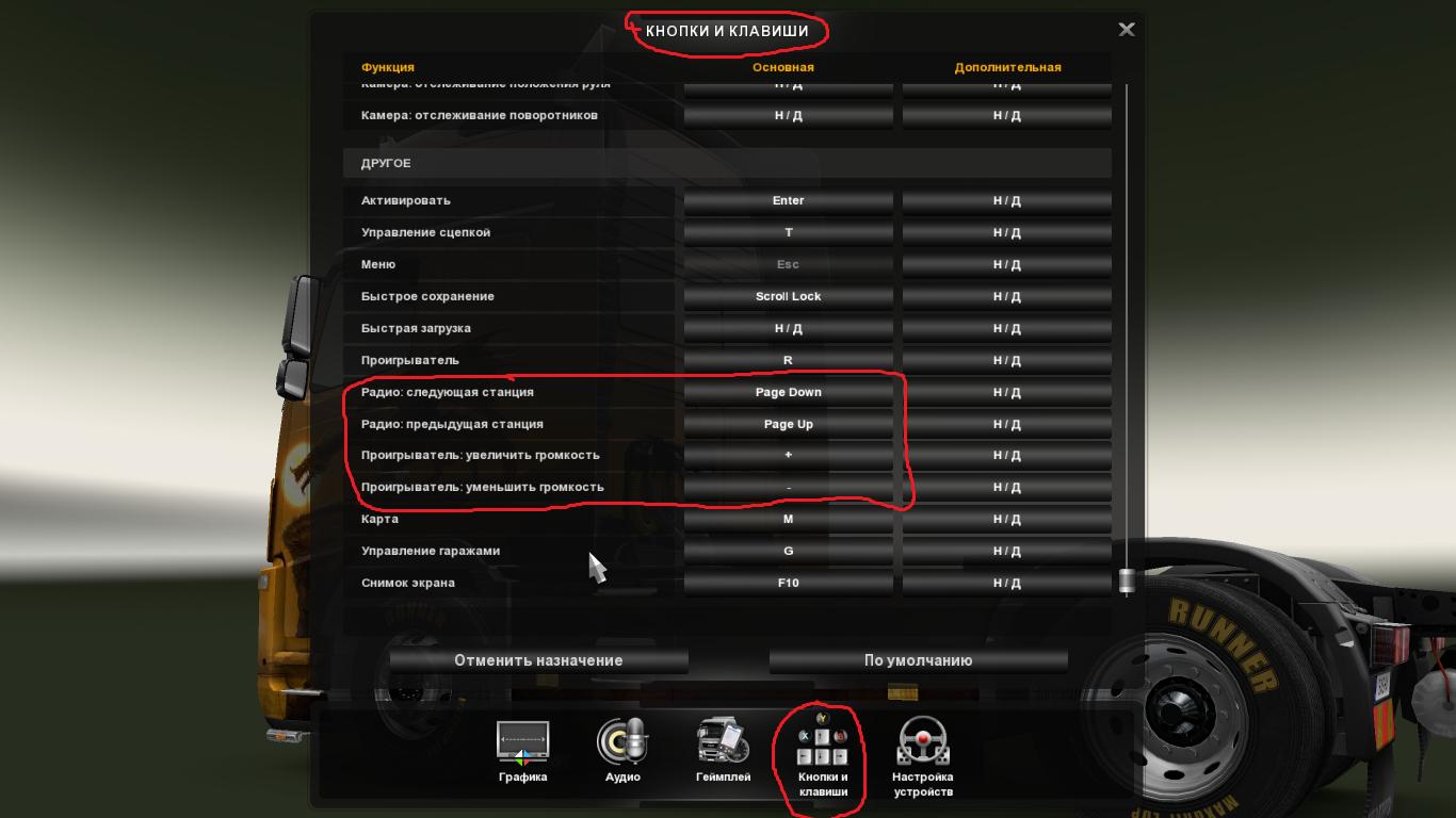 Euro Truck Simulator 2 управление на клавиатуре