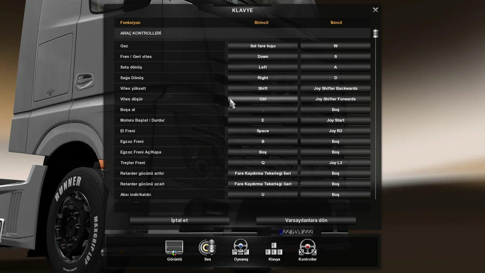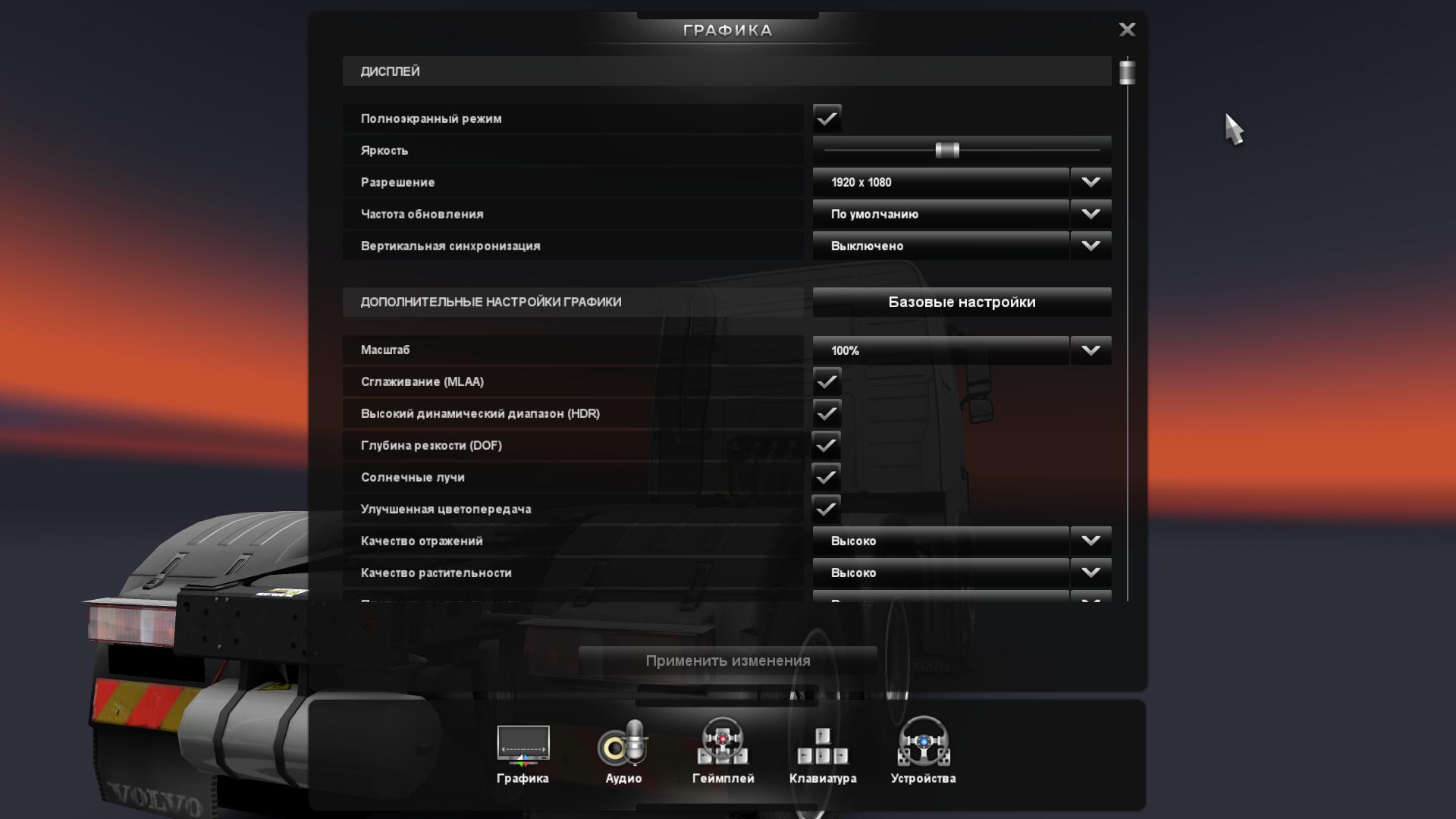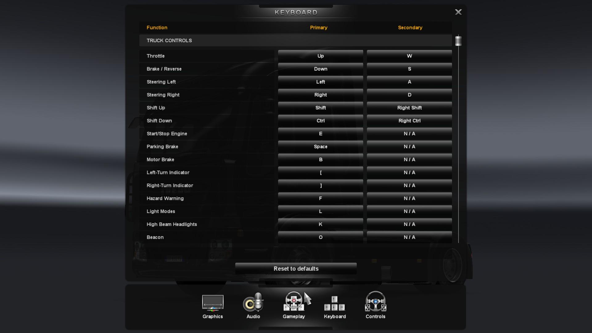 Euro Truck Simulator 2 управление на клавиатуре