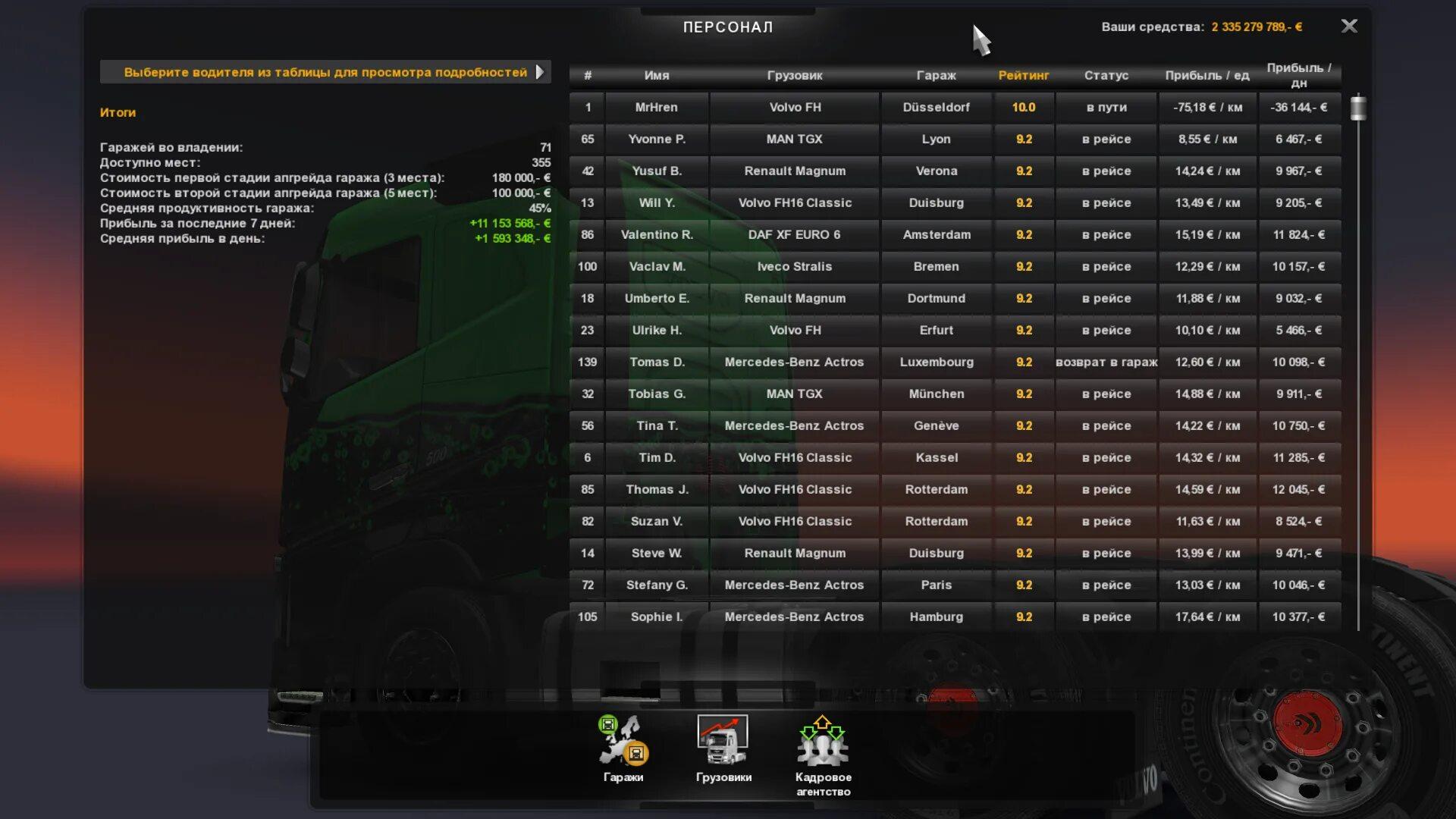 Euro Truck Simulator 2 найм водителей