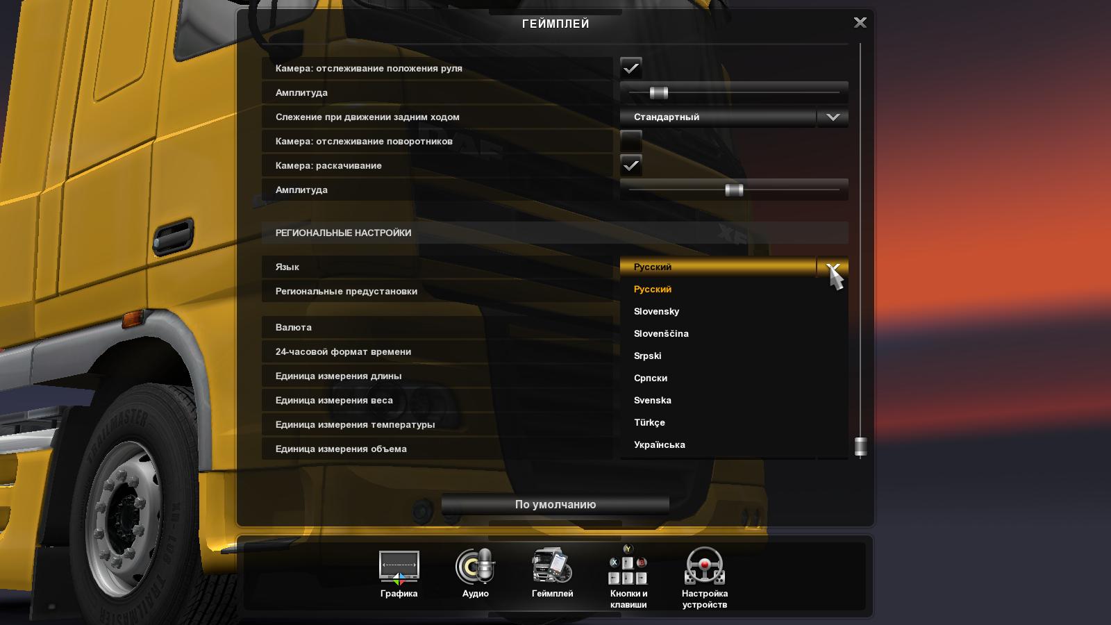 Евро трек симулятор как поменять язык