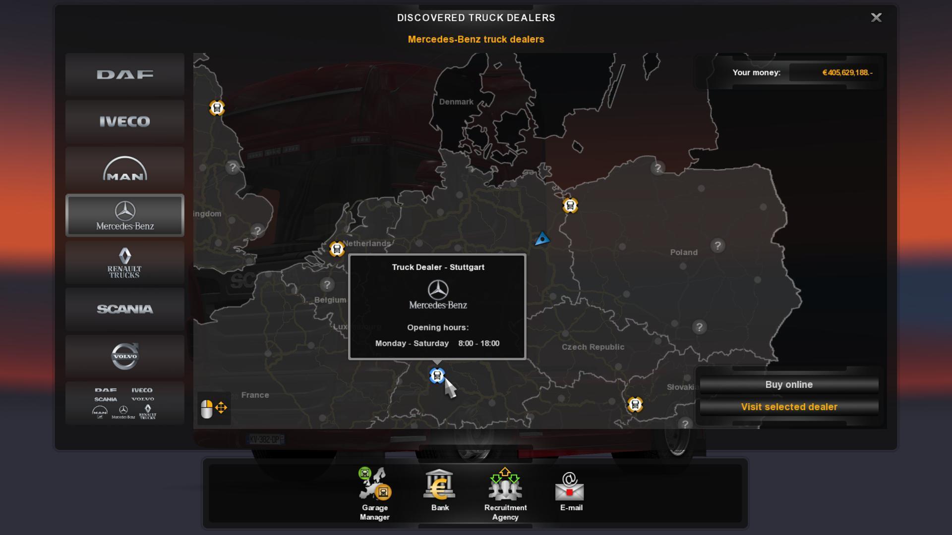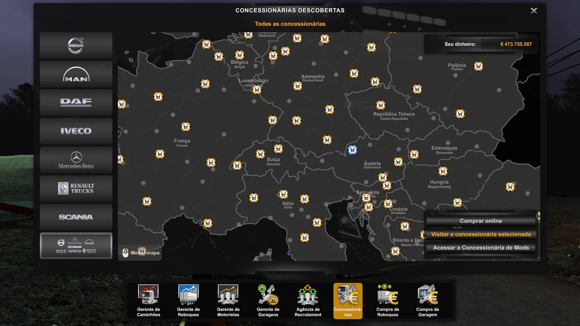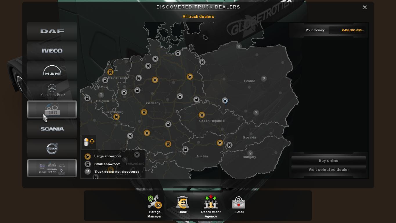 Карта автосалонов в Euro Truck Simulator 2