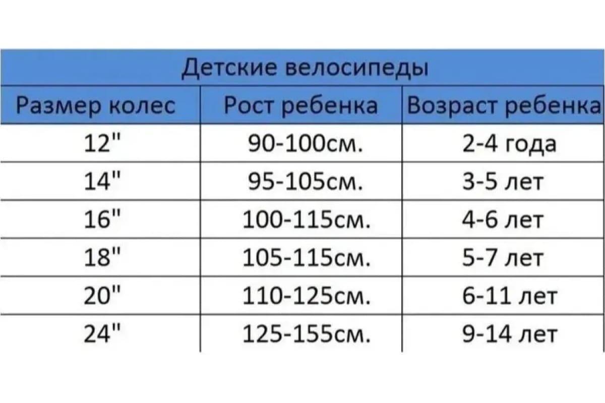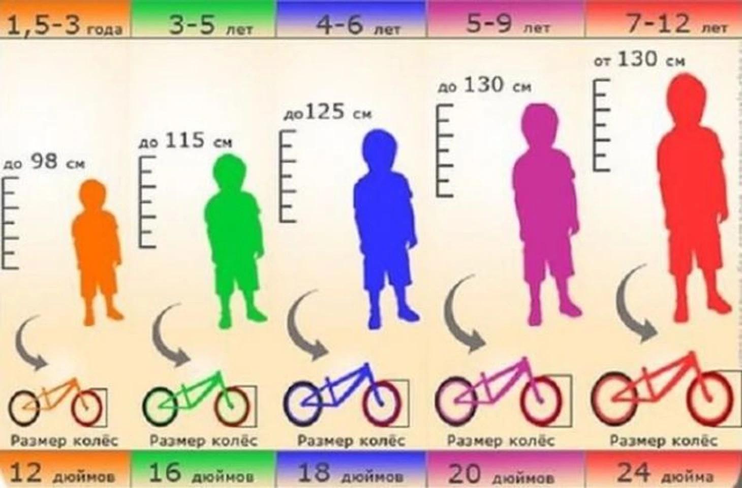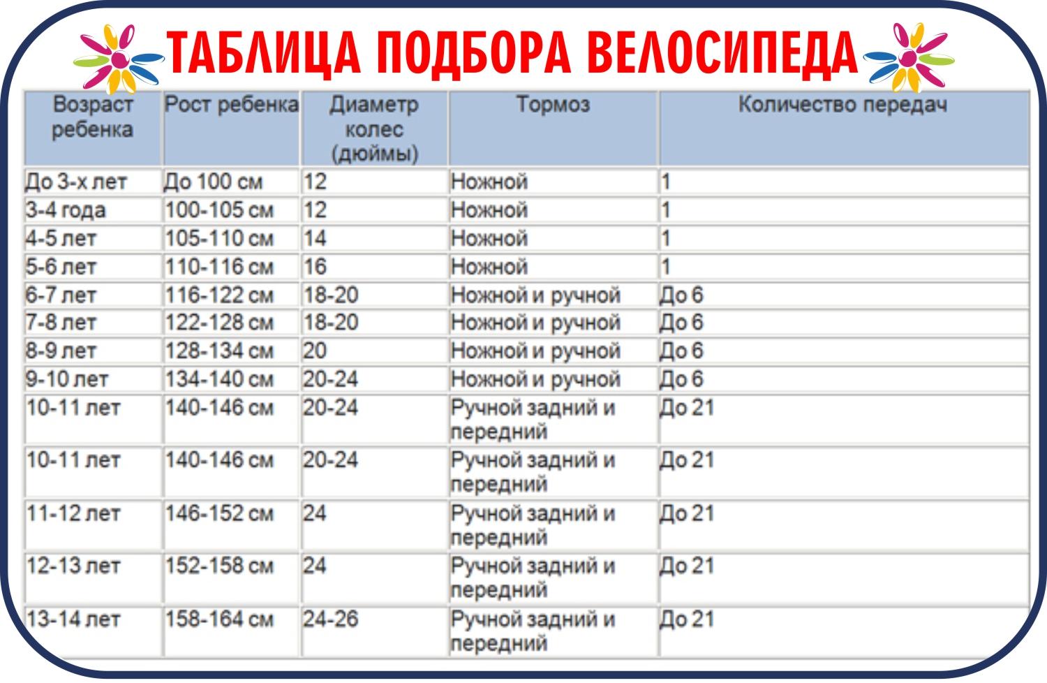 Размер колёс велосипеда по росту ребенка таблица
