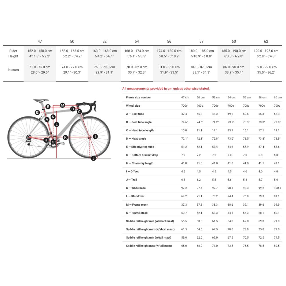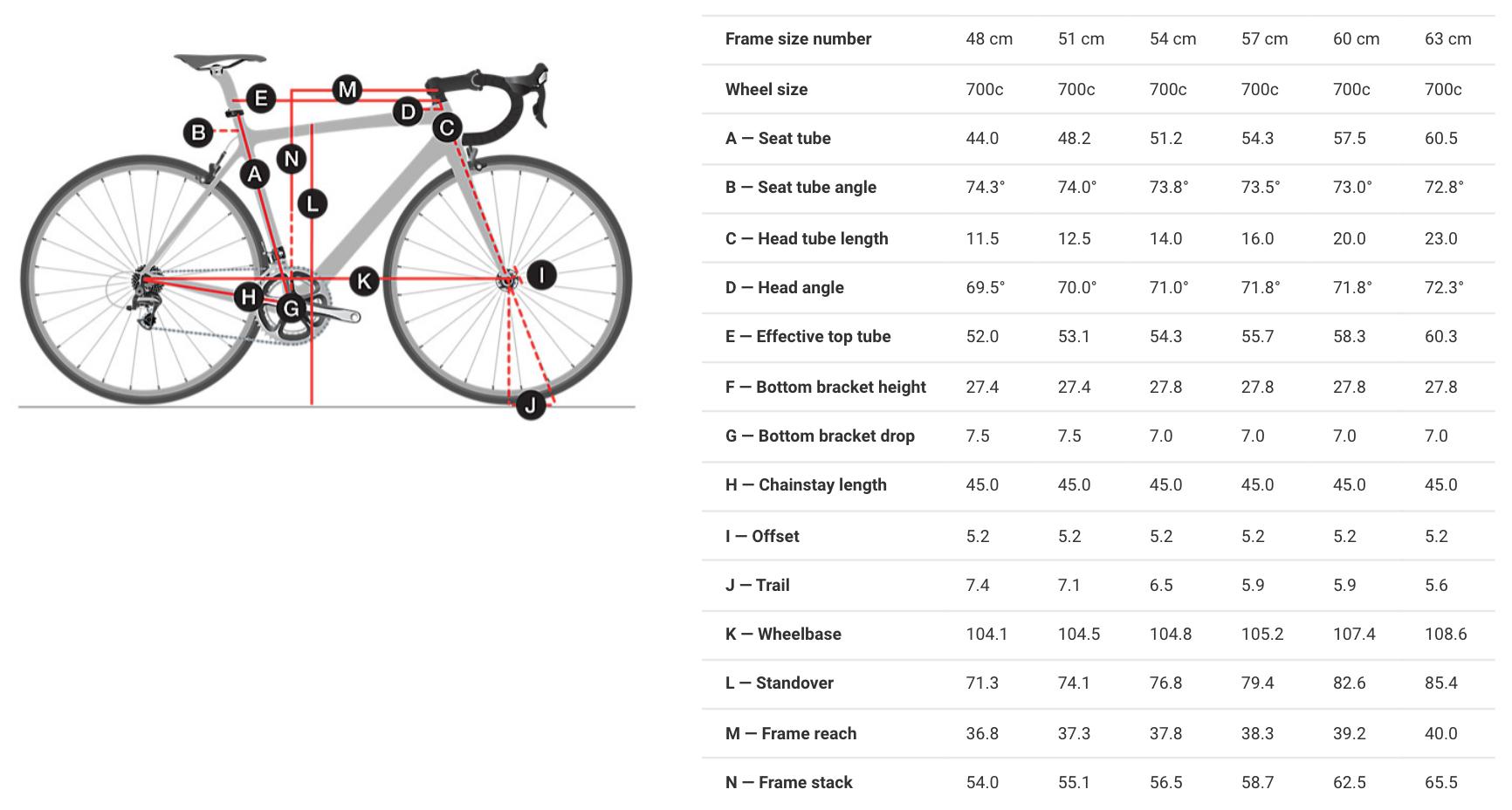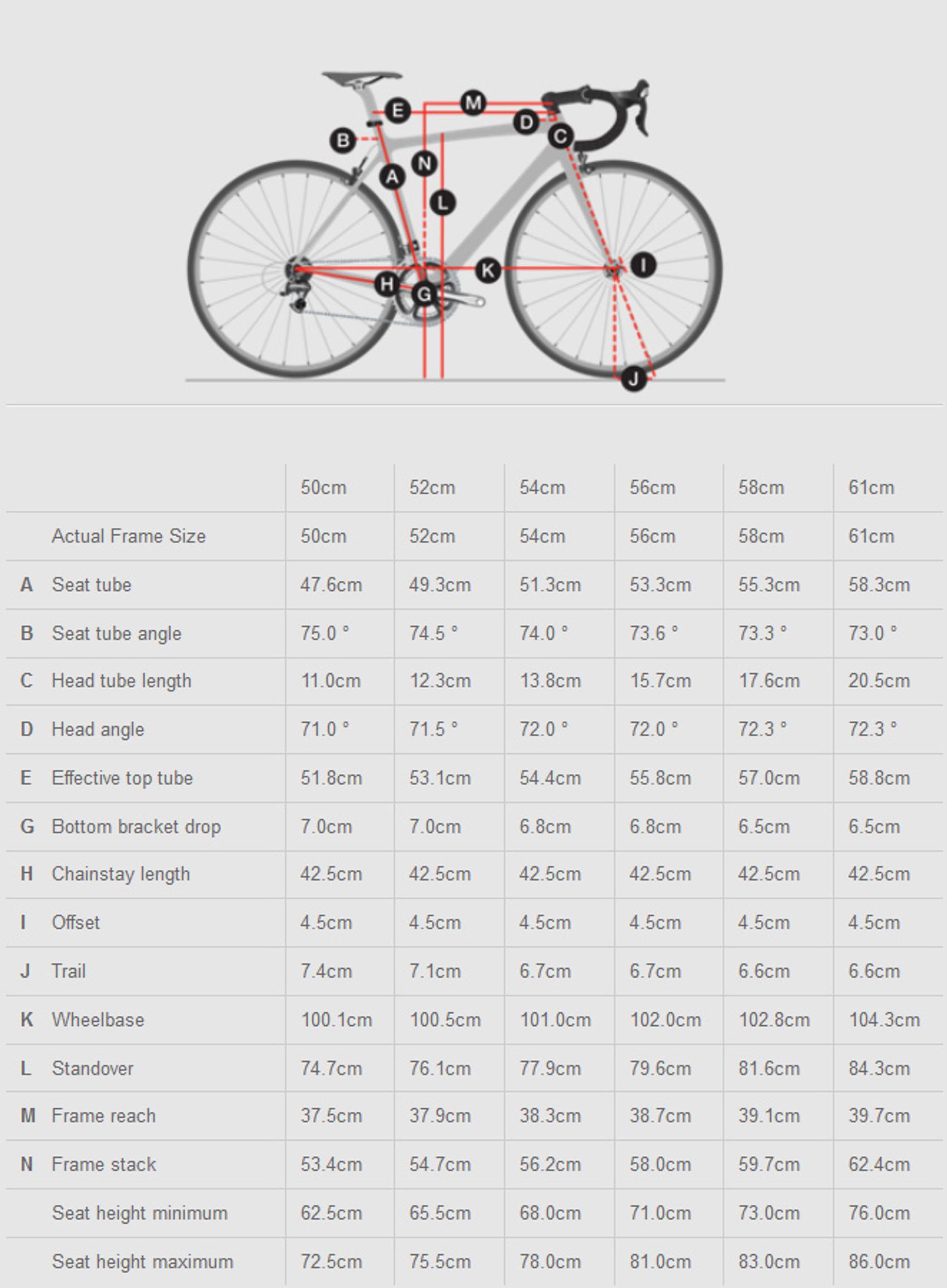 Таблица размеров рамы шоссейного велосипеда