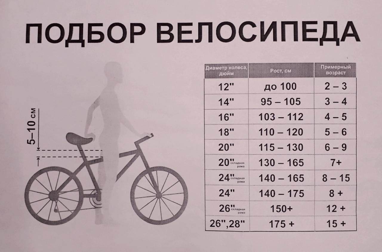 Подобрать велосипед по росту таблица диаметр колес