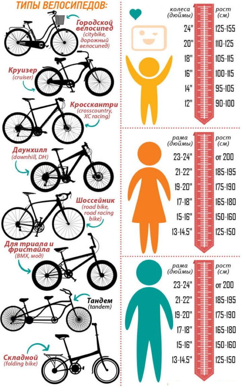 Таблица выбора велосипеда по росту и весу
