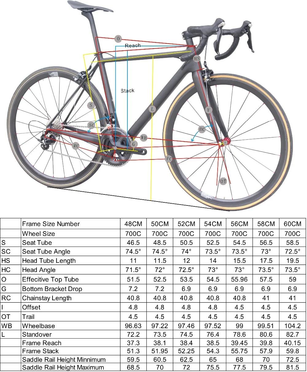 Размер рамы шоссейного велосипеда по росту таблица
