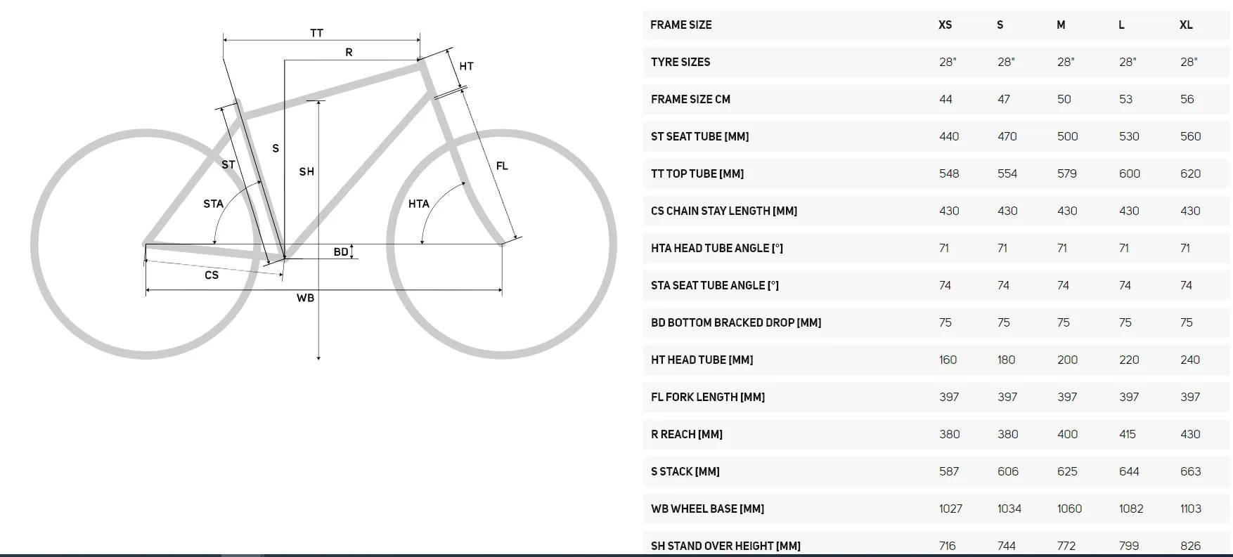 Таблица велосипедов Cube