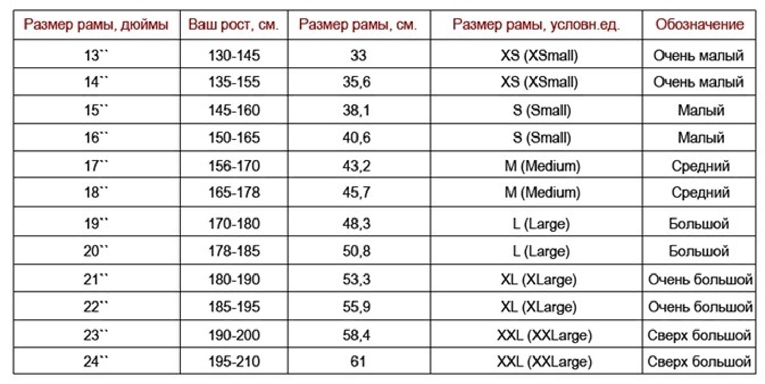 Размер рамы горного велосипеда по росту таблица мужчины
