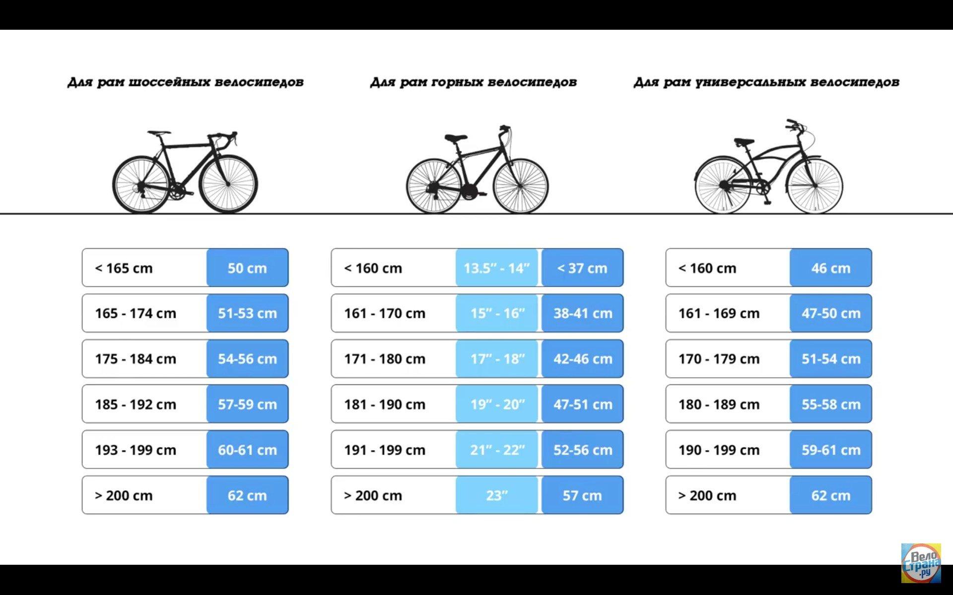 Размер рамы велосипеда по росту шоссейный велосипед
