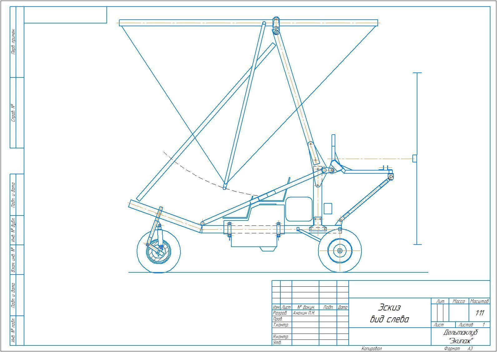 Чертеж тележки дельталета