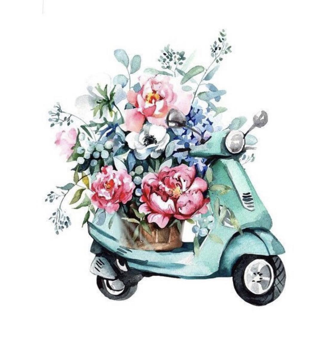 Машина с цветами акварель