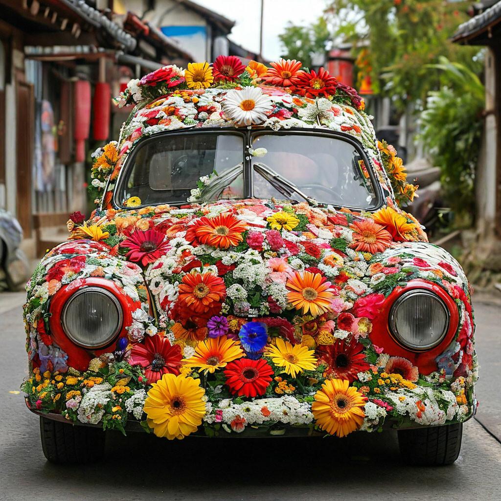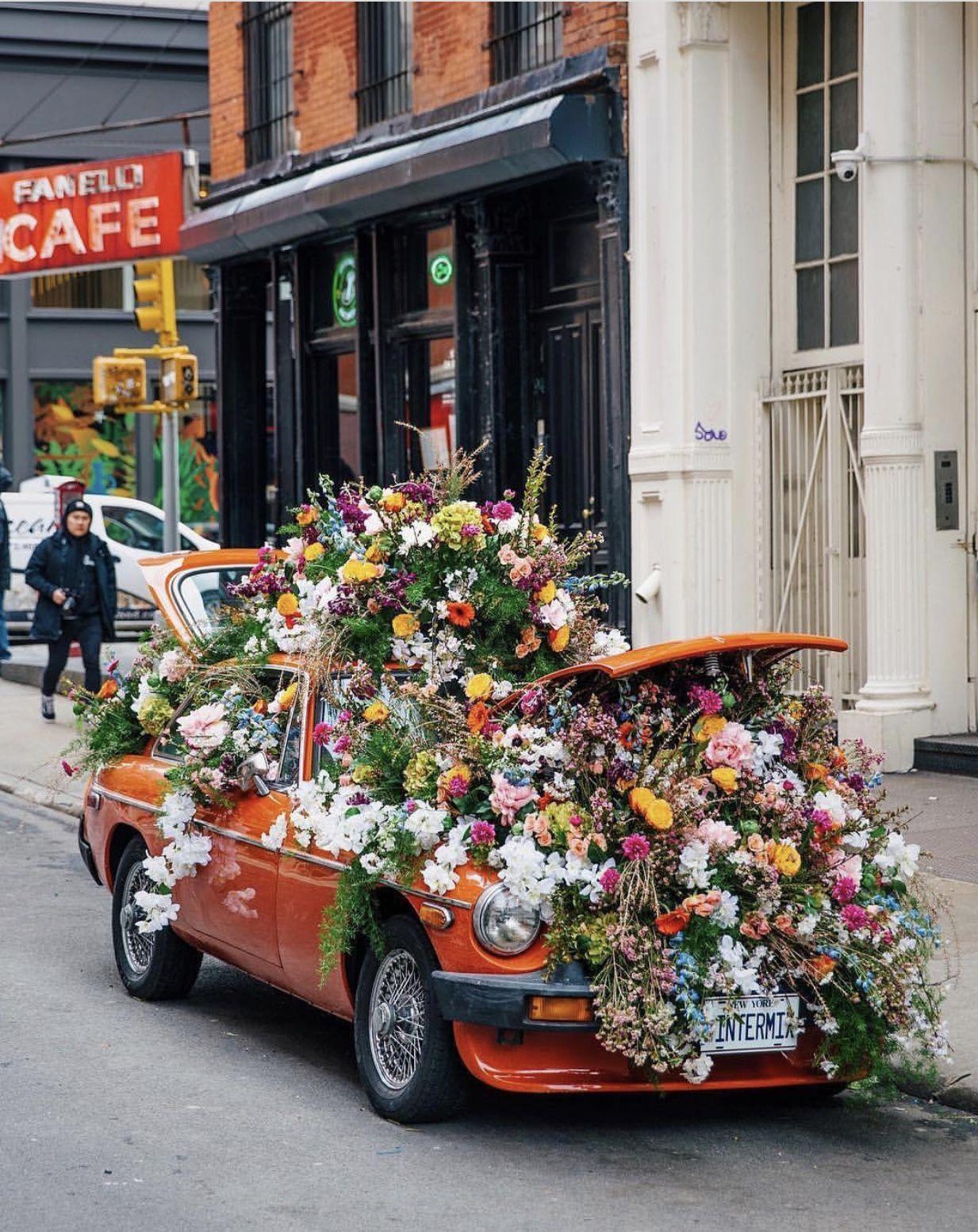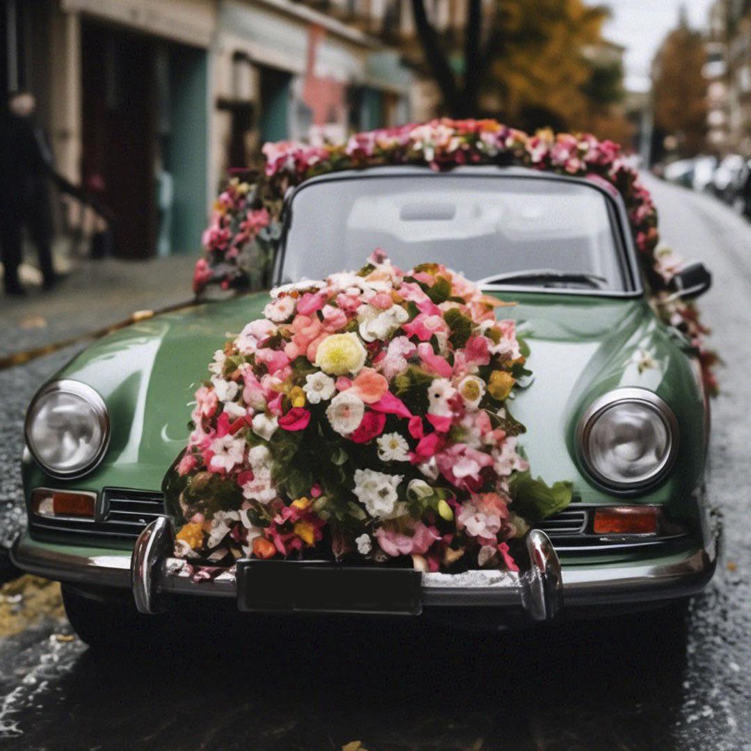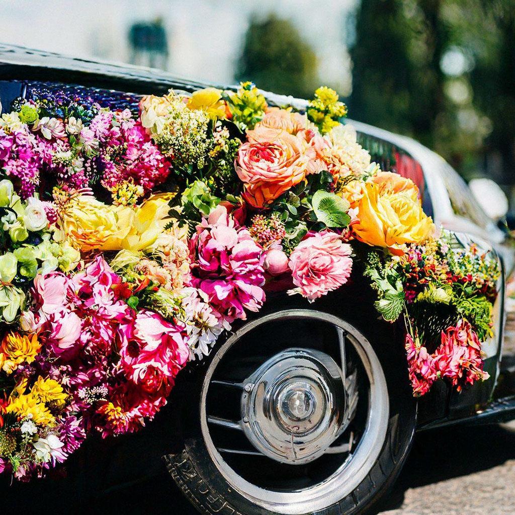 Машина усыпанная цветами