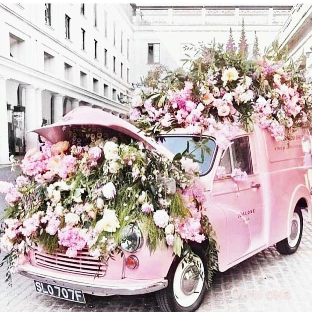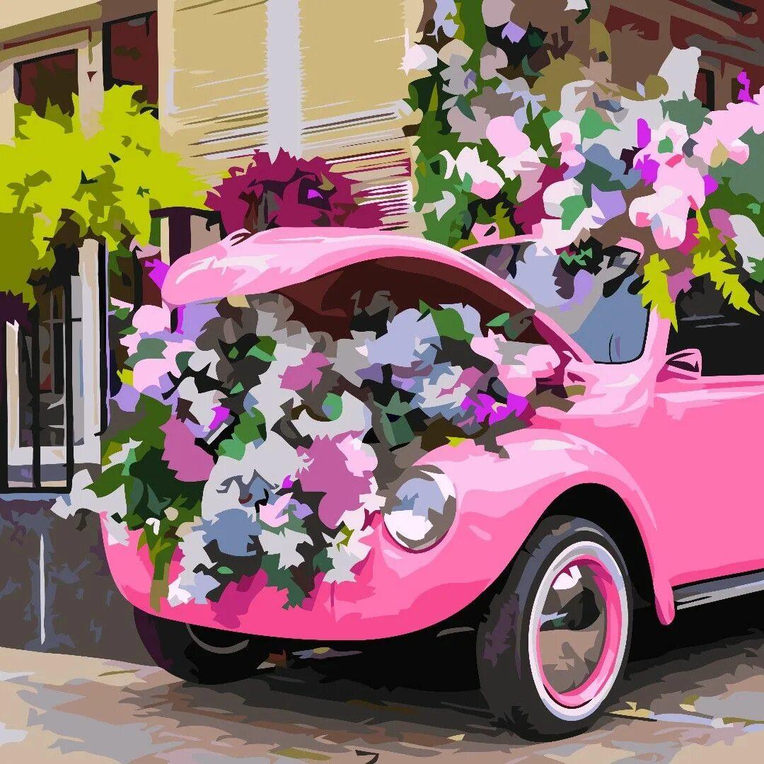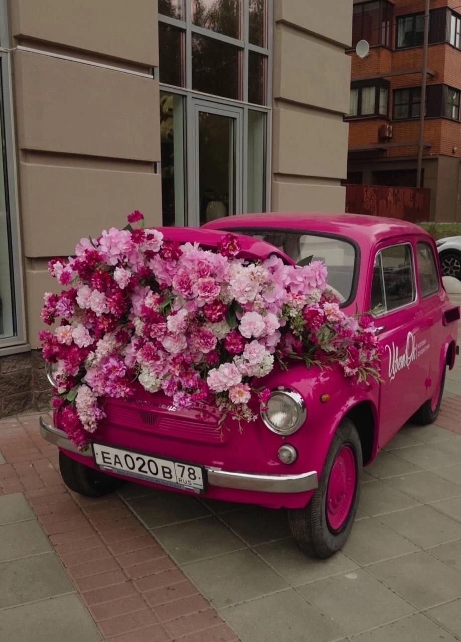 Розовая машина с цветами
