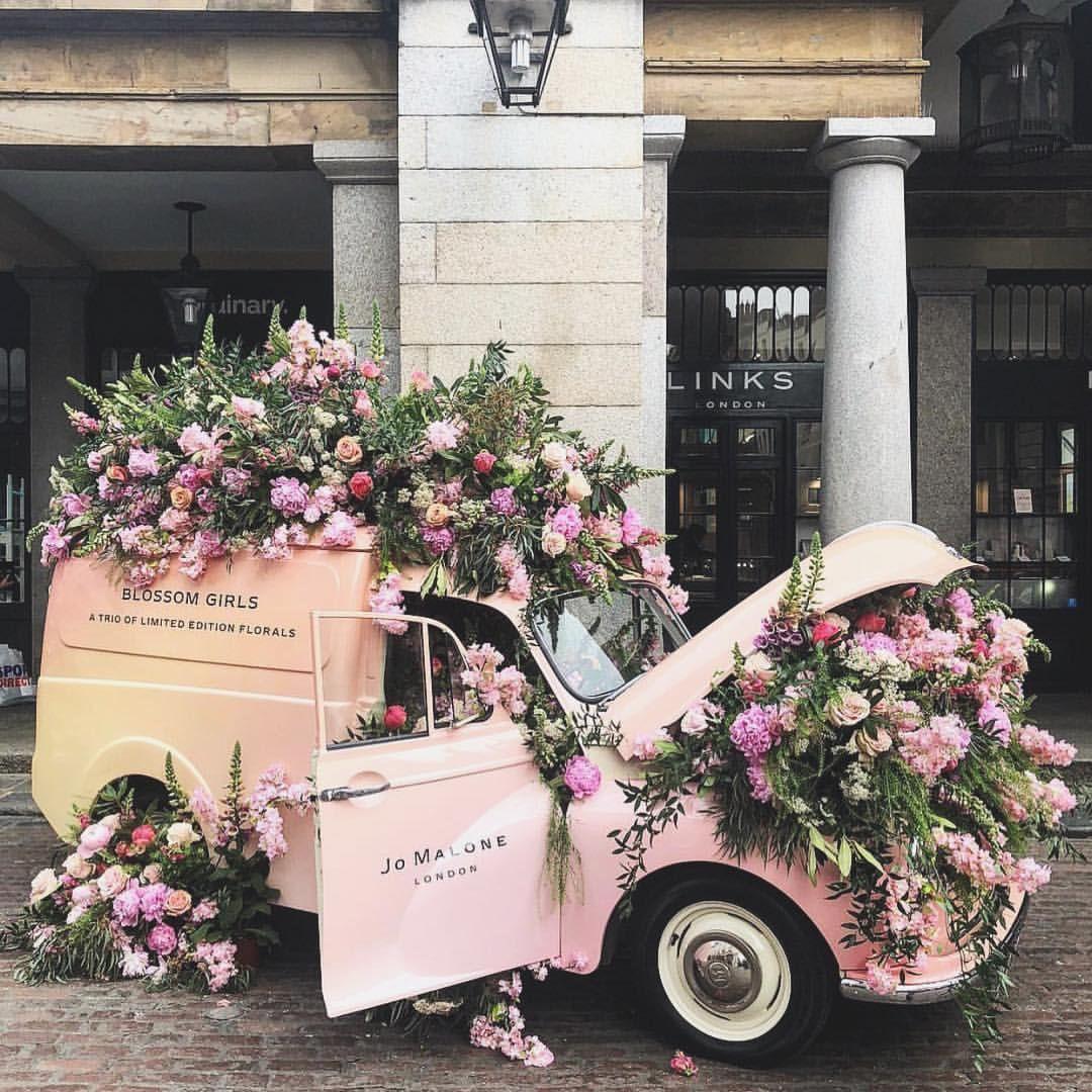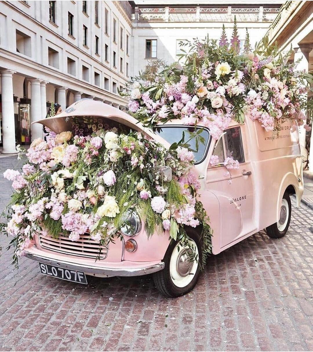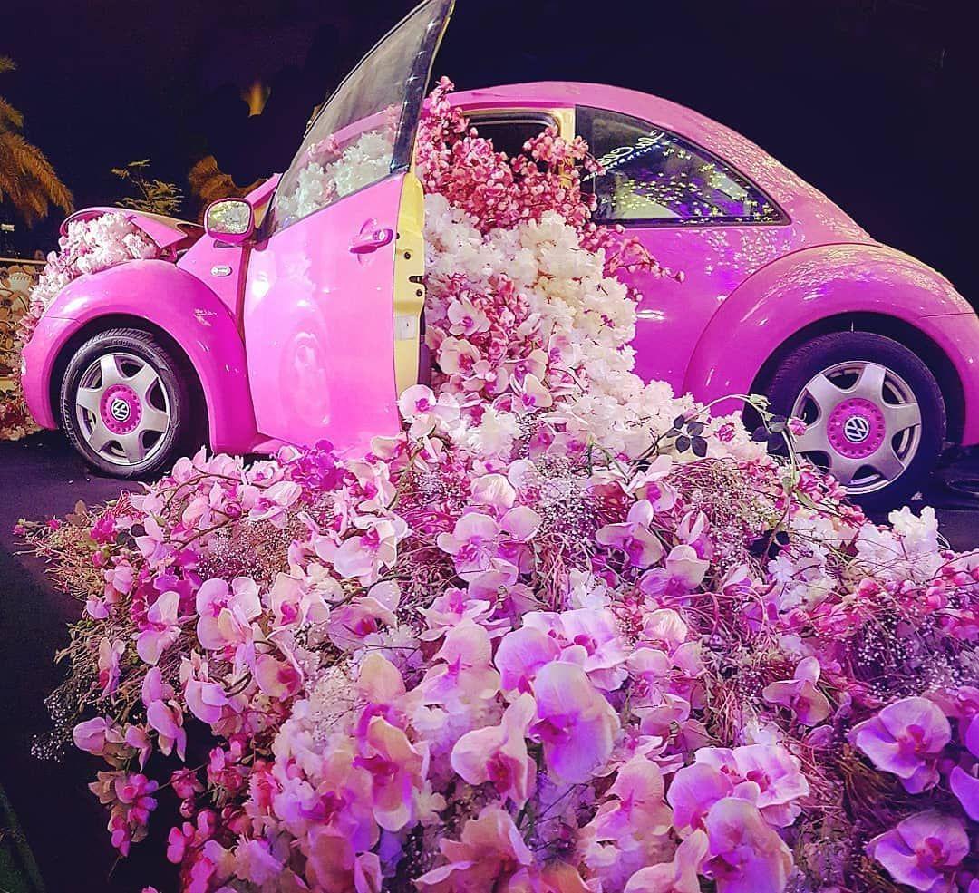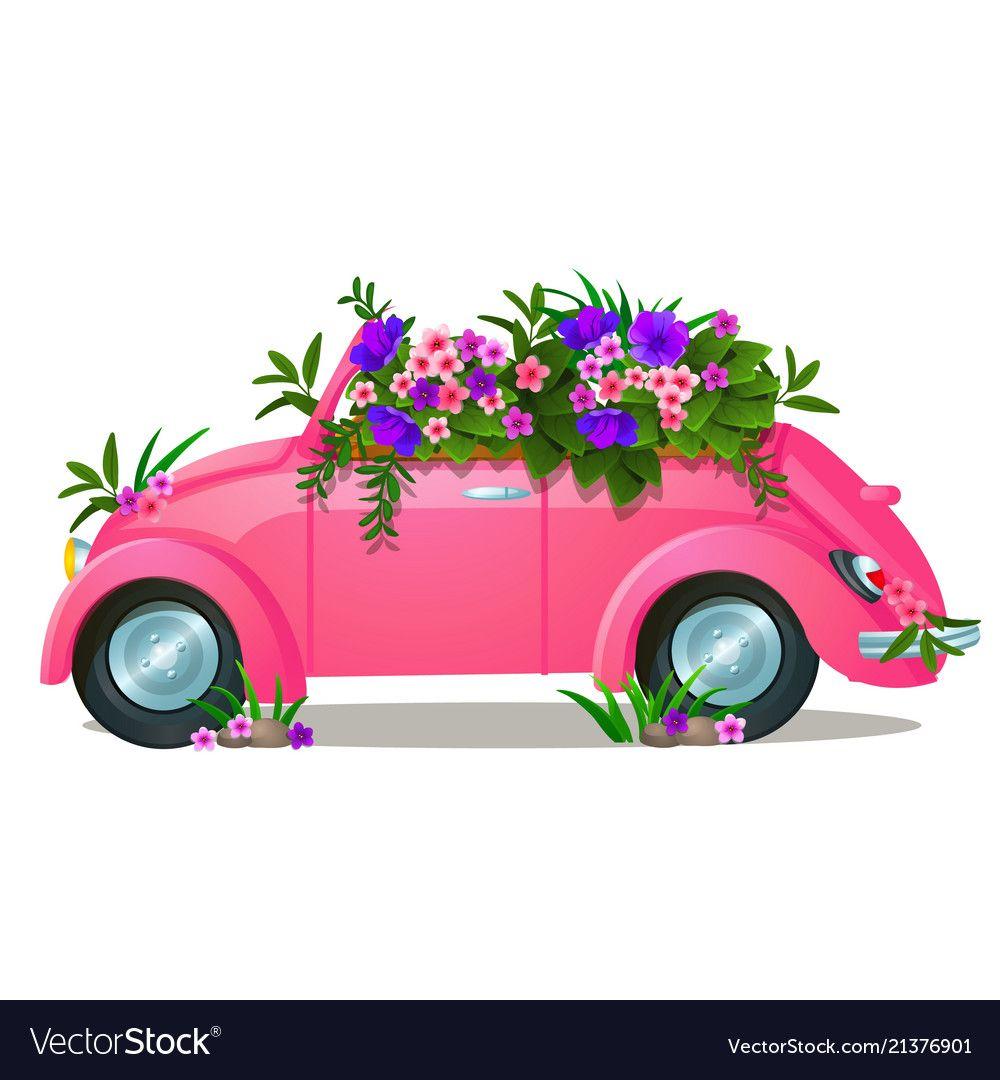 Розовая машина с цветами