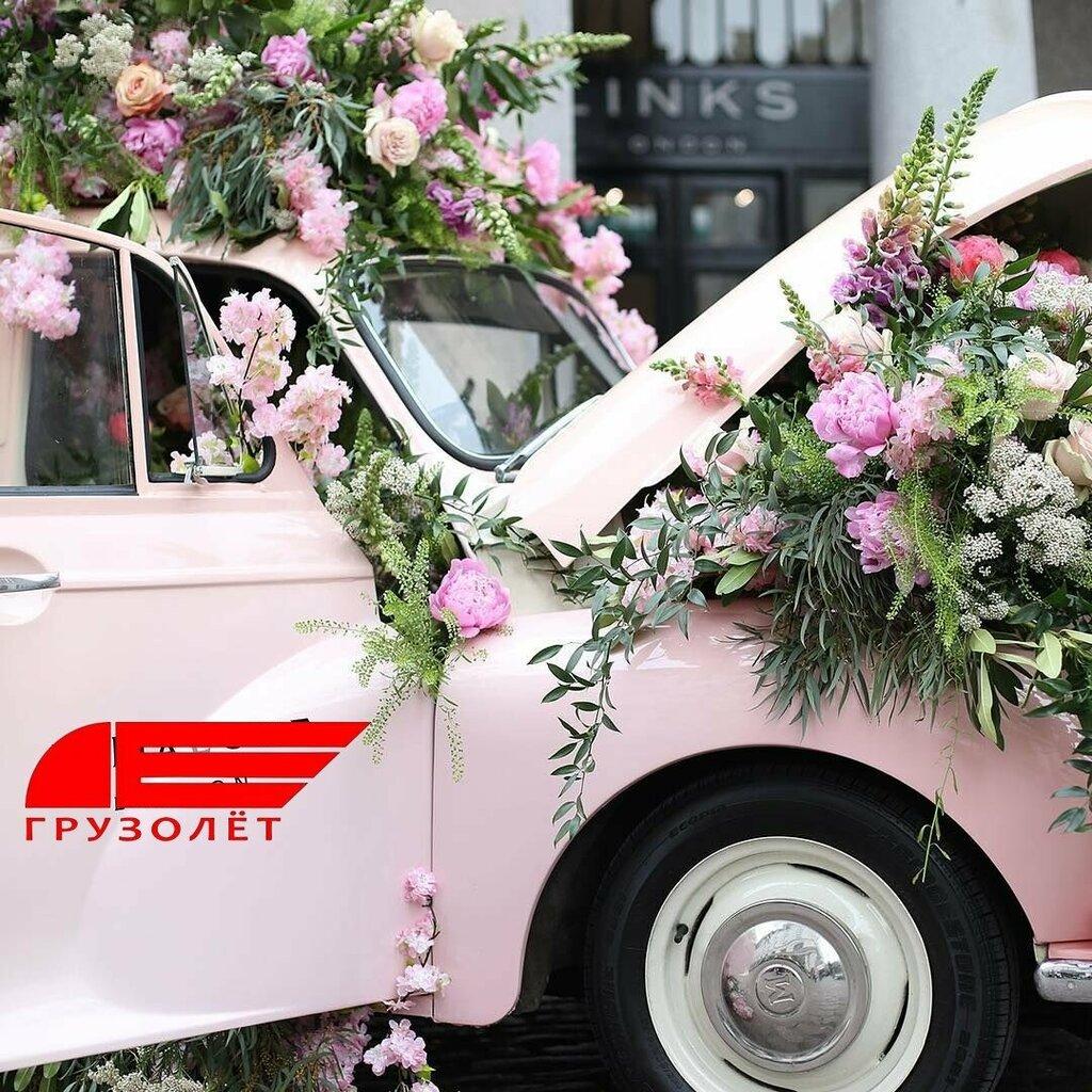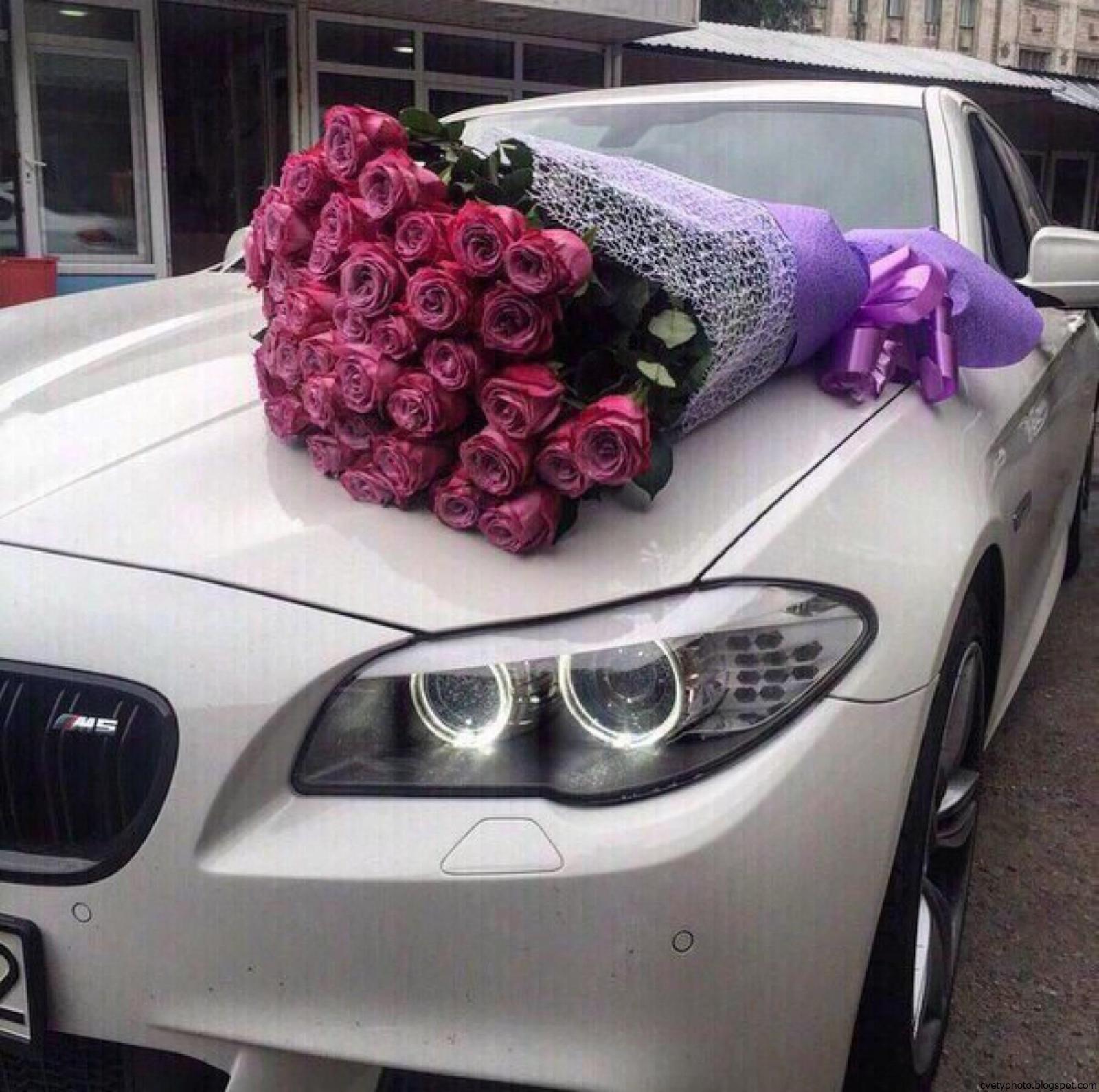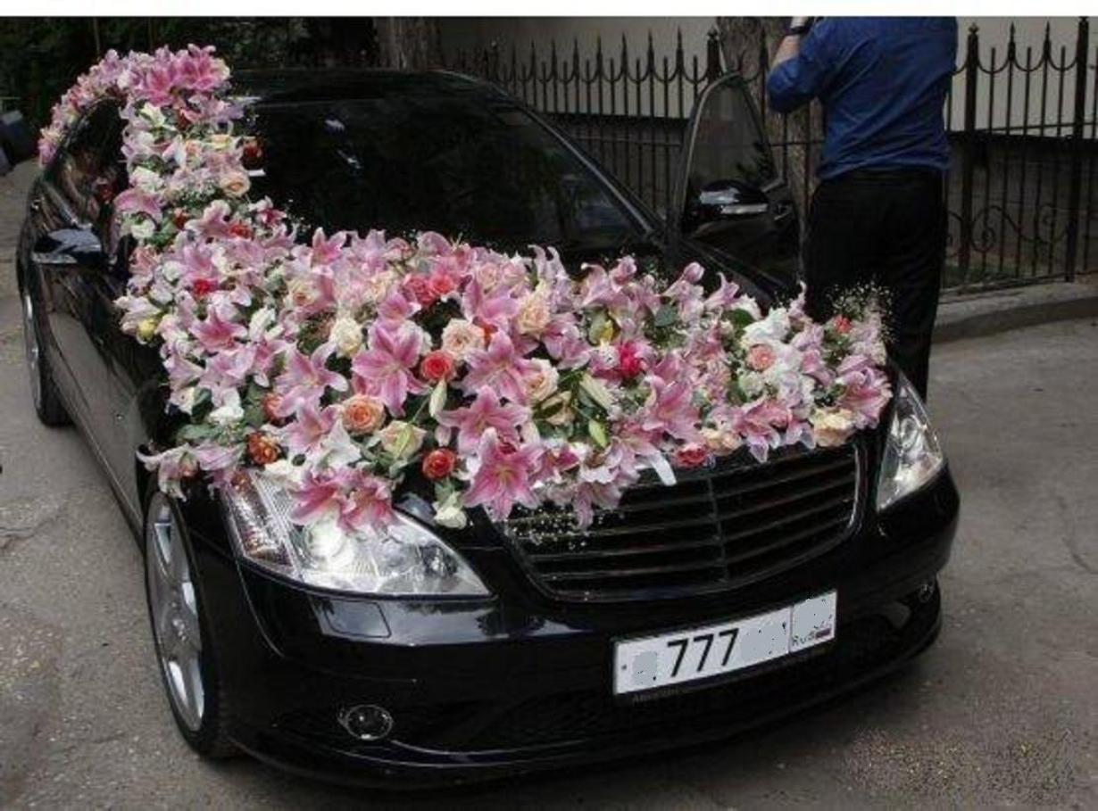 ![Букет цветов на капоте машины]()