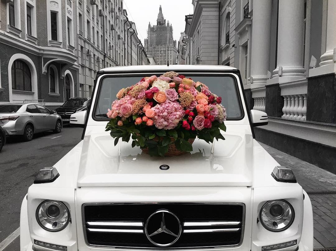 Букет цветов на капоте машины