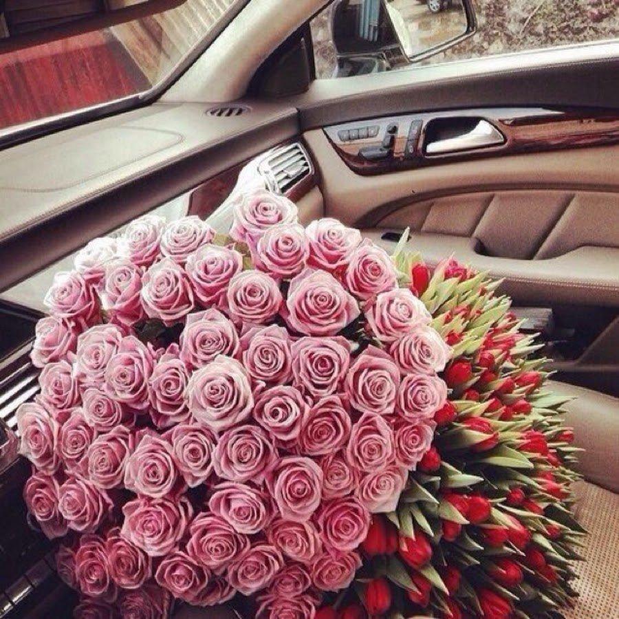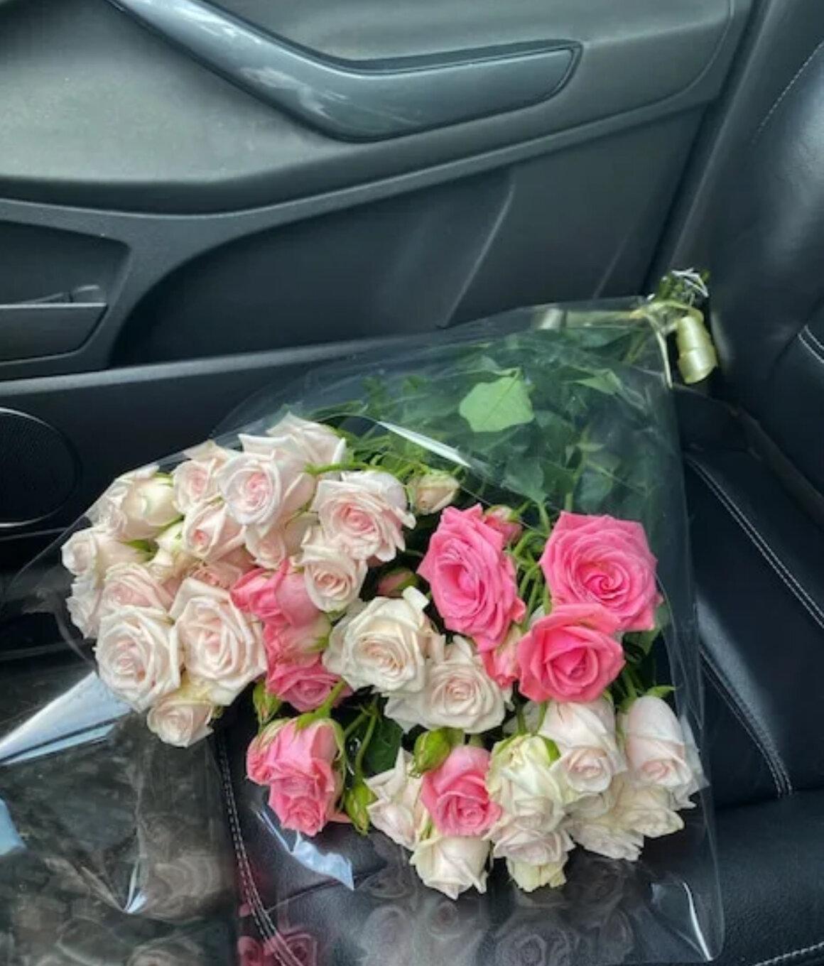Букет роз в машине