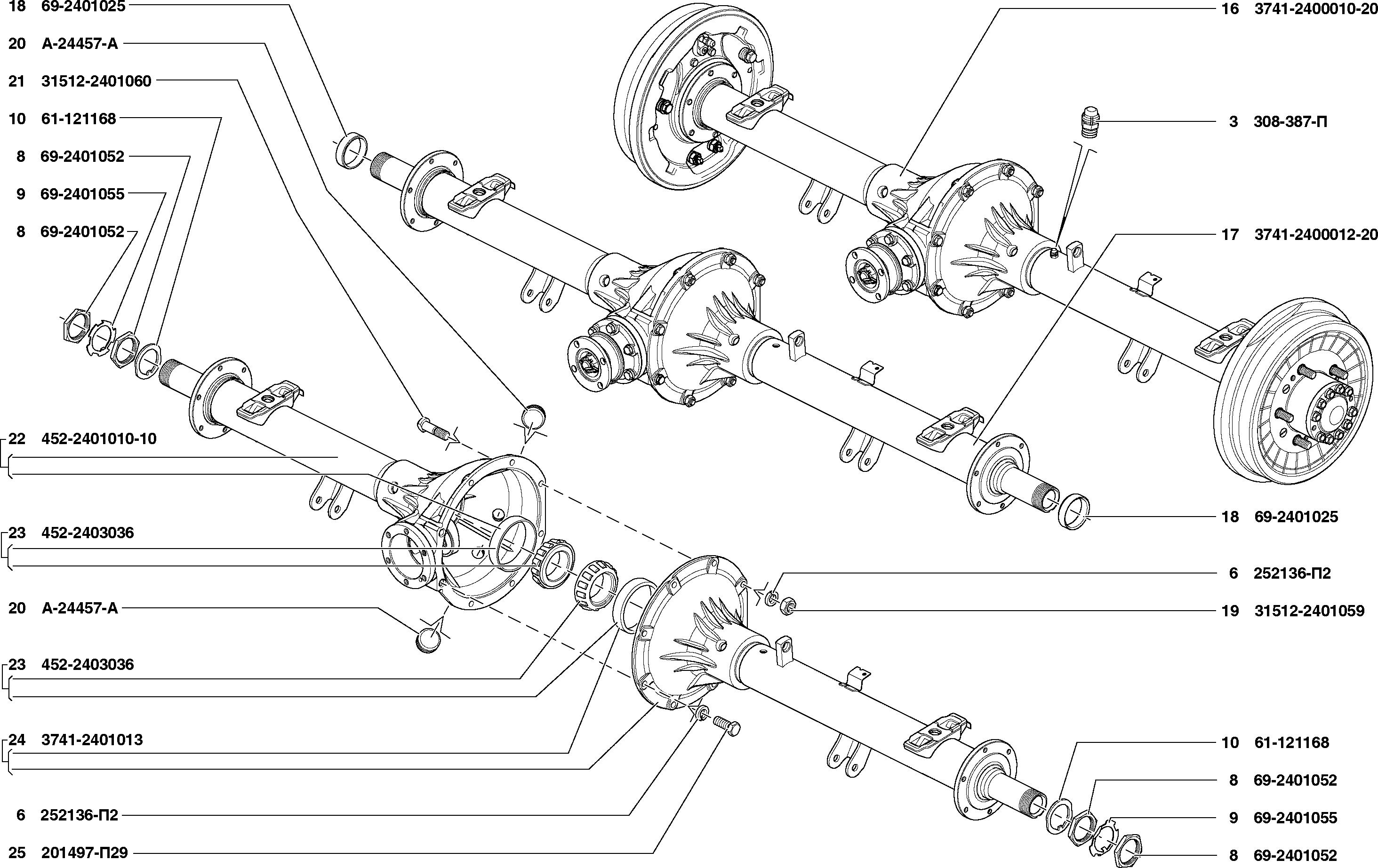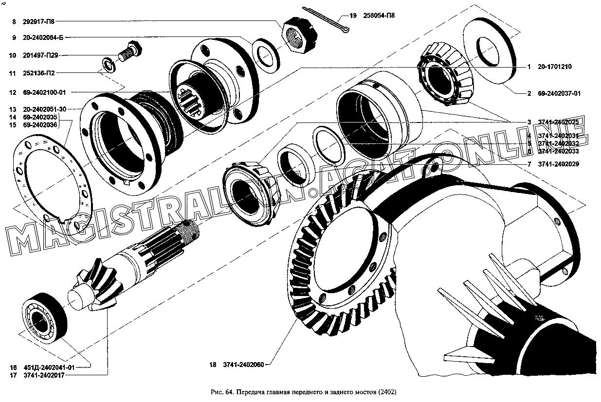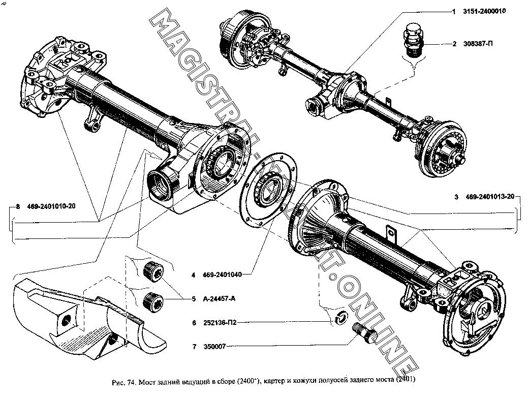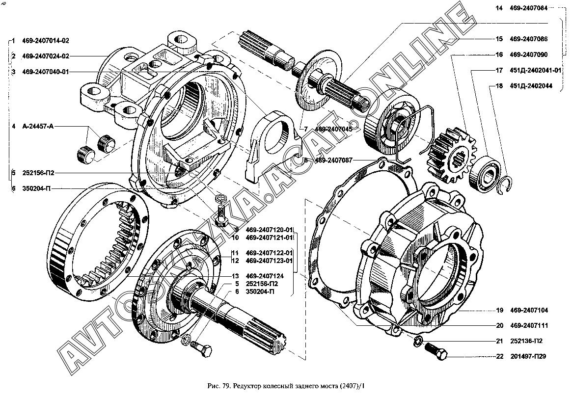 Схема переднего редукторного моста УАЗ 469