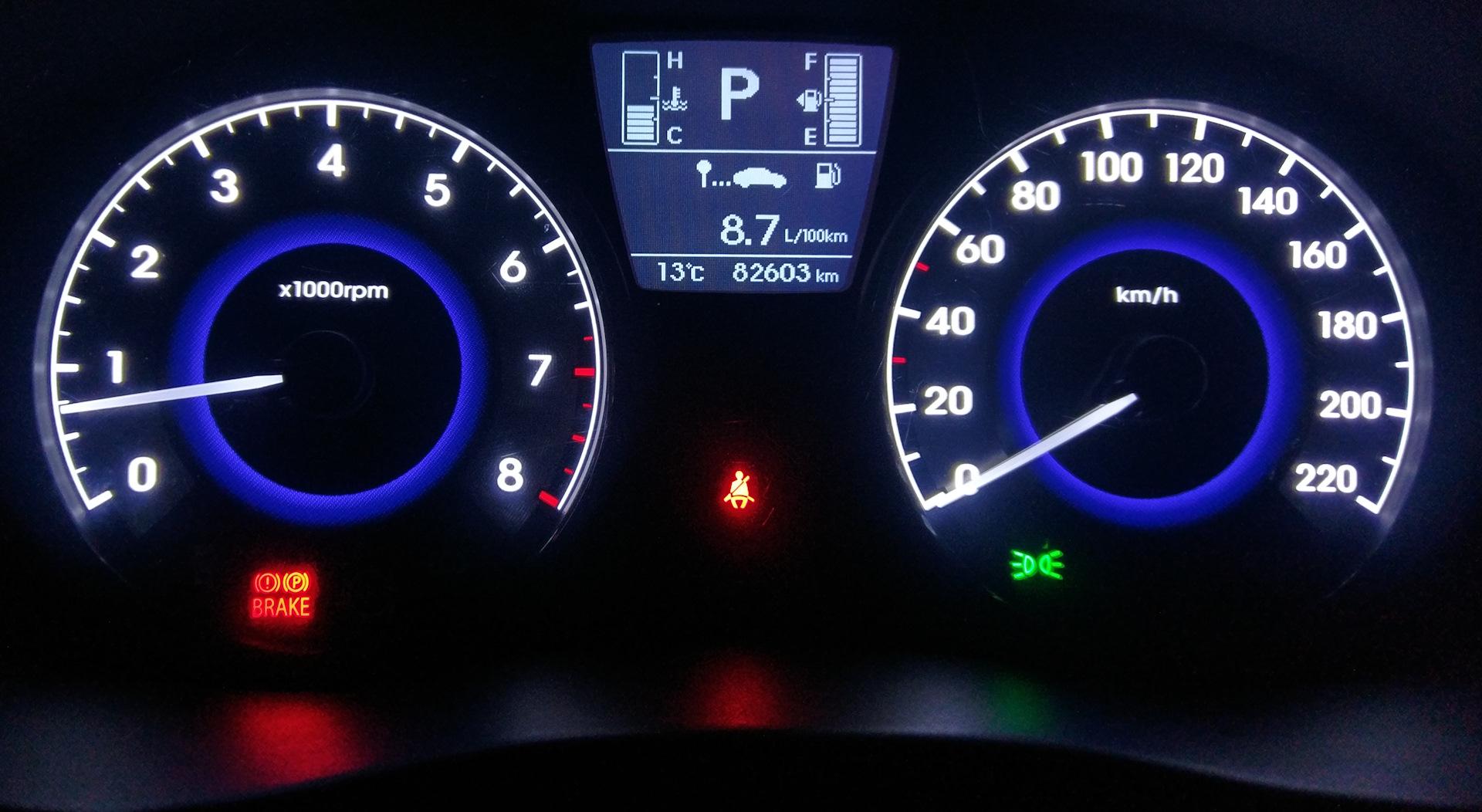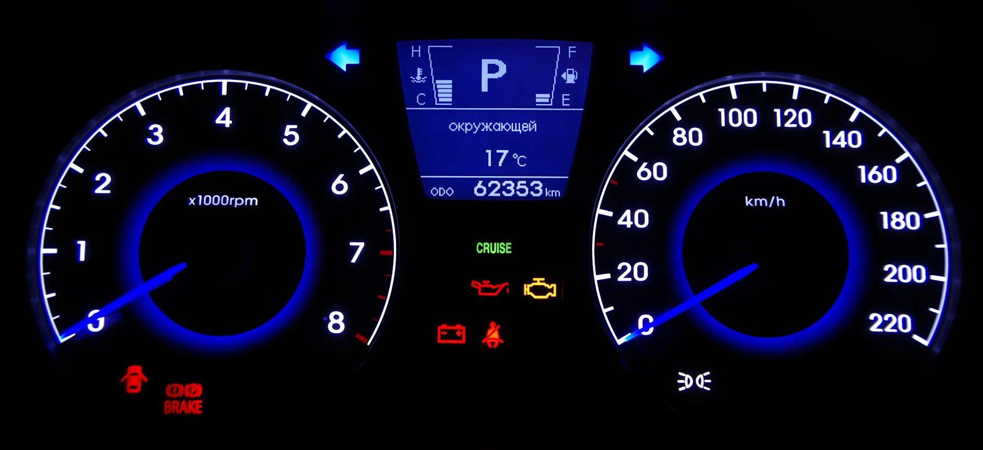 Индикаторы панели приборов Hyundai Solaris