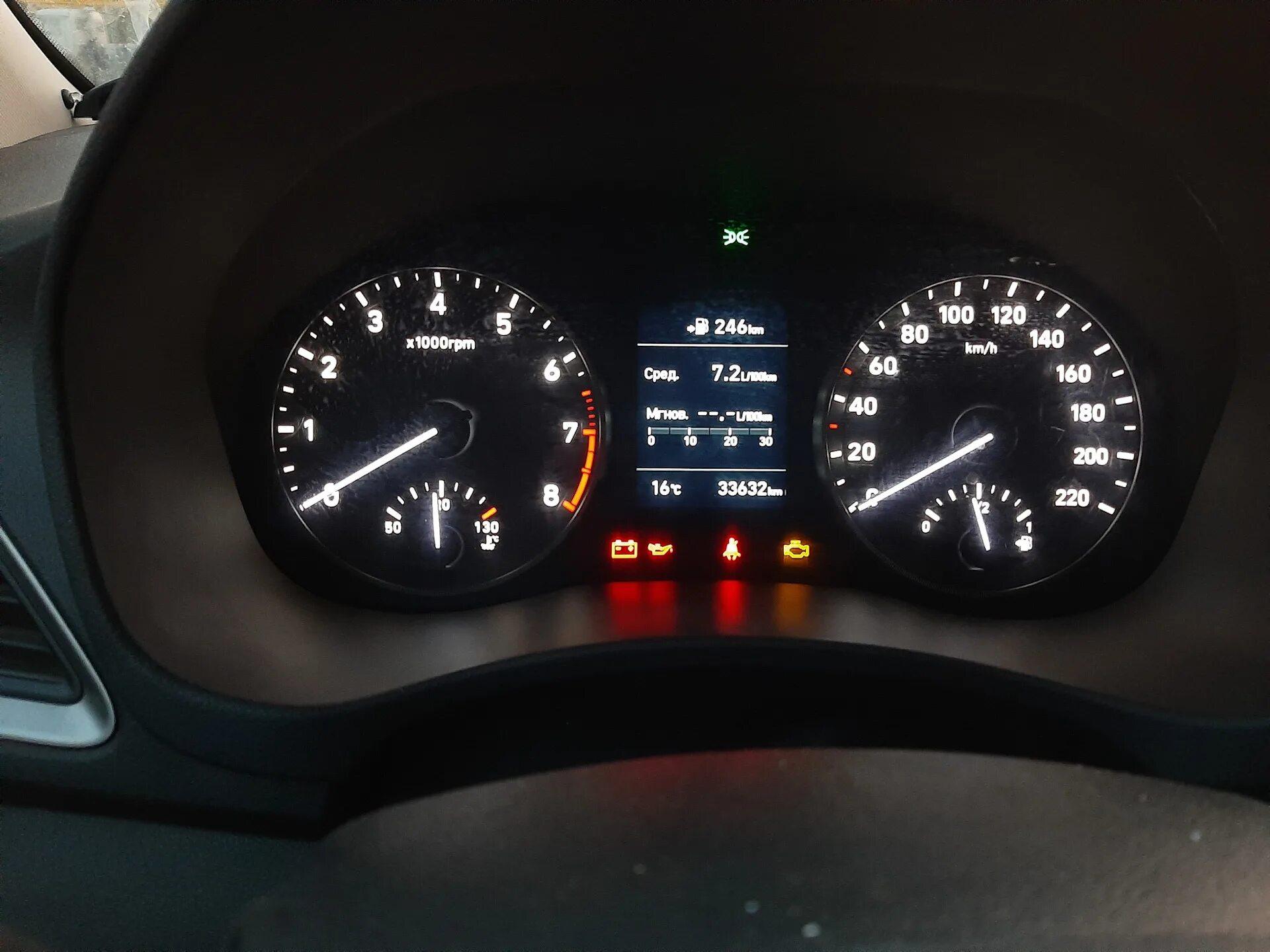 Hyundai Solaris значки на панели приборов