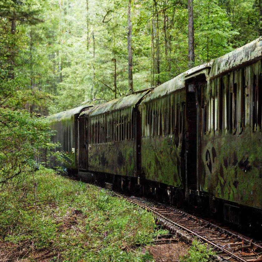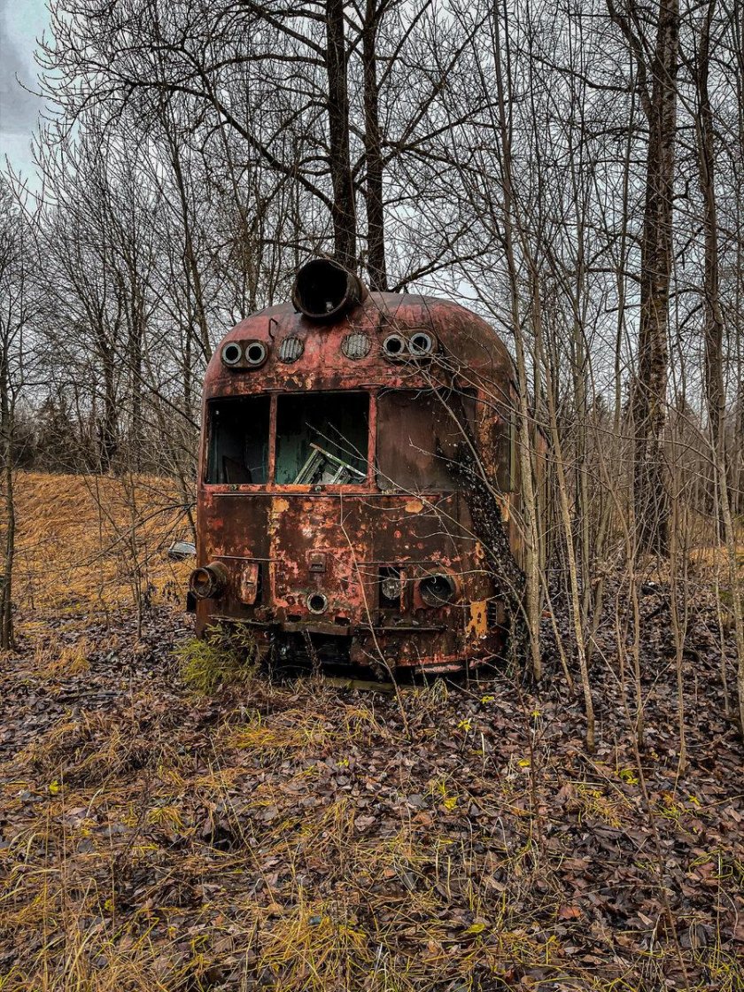 Заброшенные поезда в лесу Припять