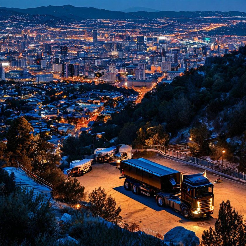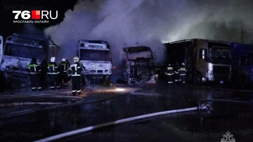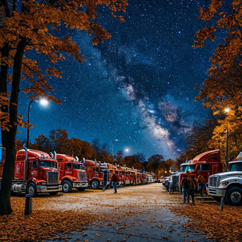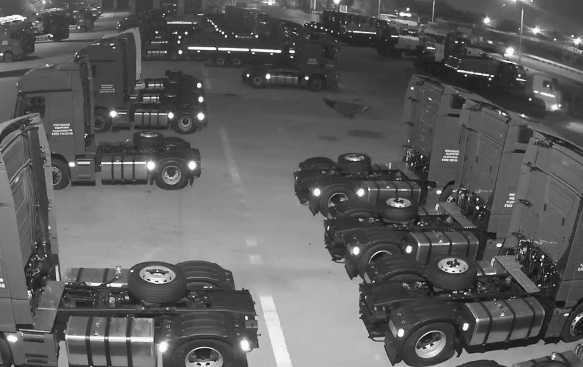 Стоянка грузовиков ночью