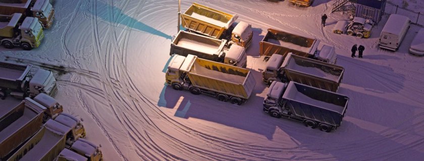 Зимняя стоянка грузовиков