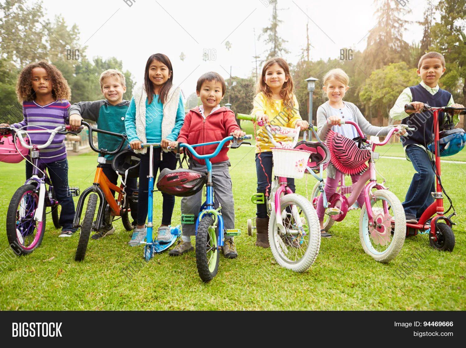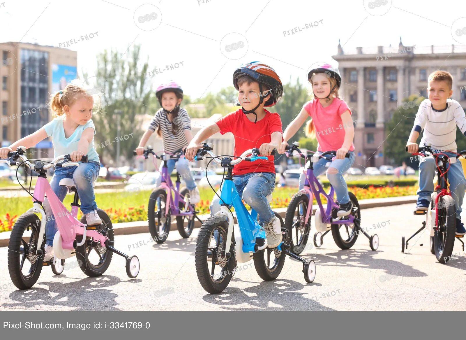 Дети катаются на велосипе