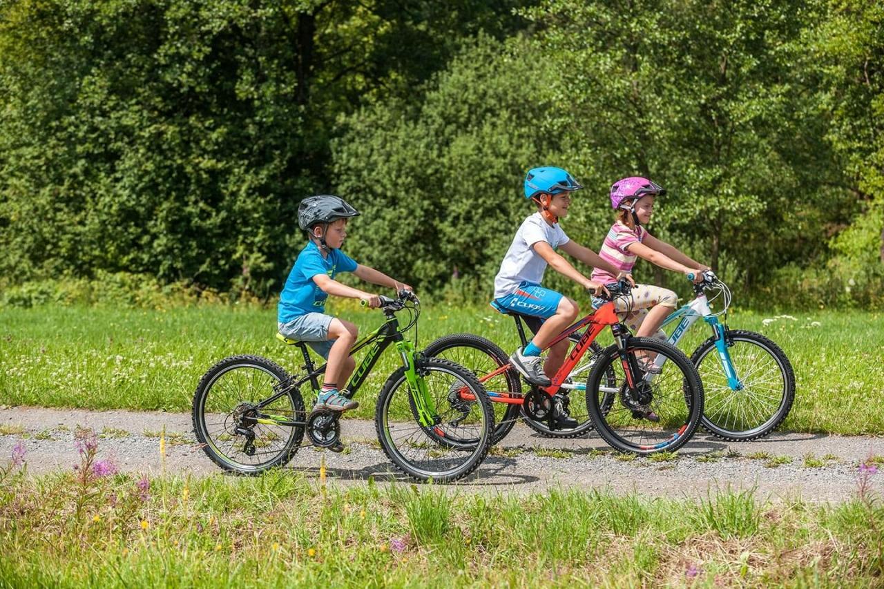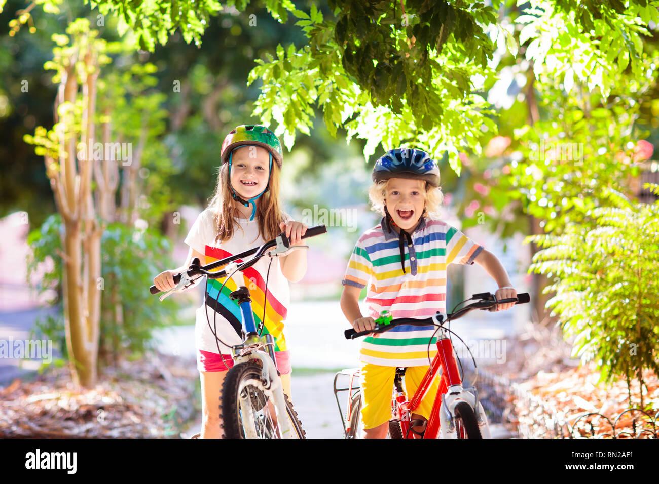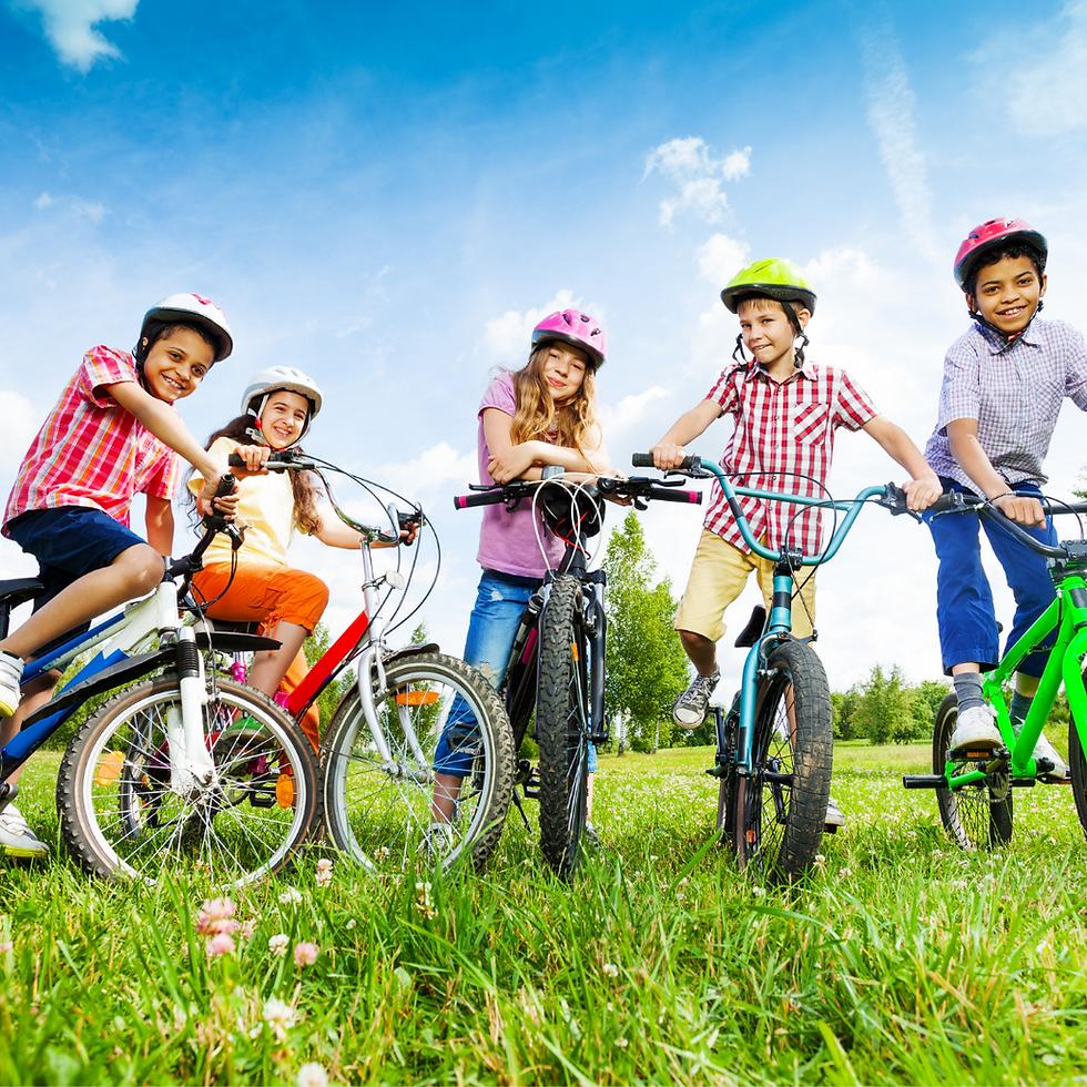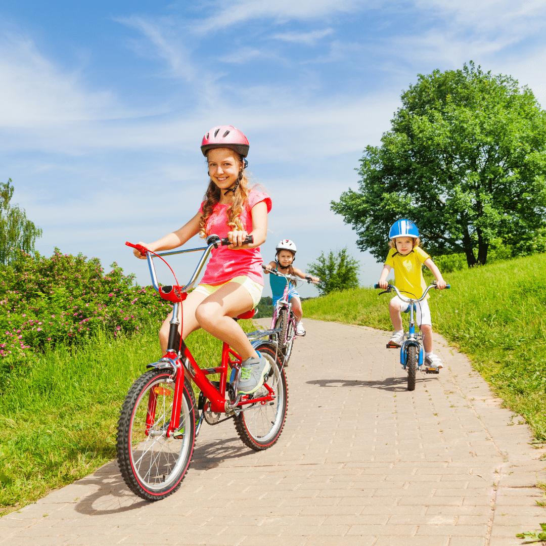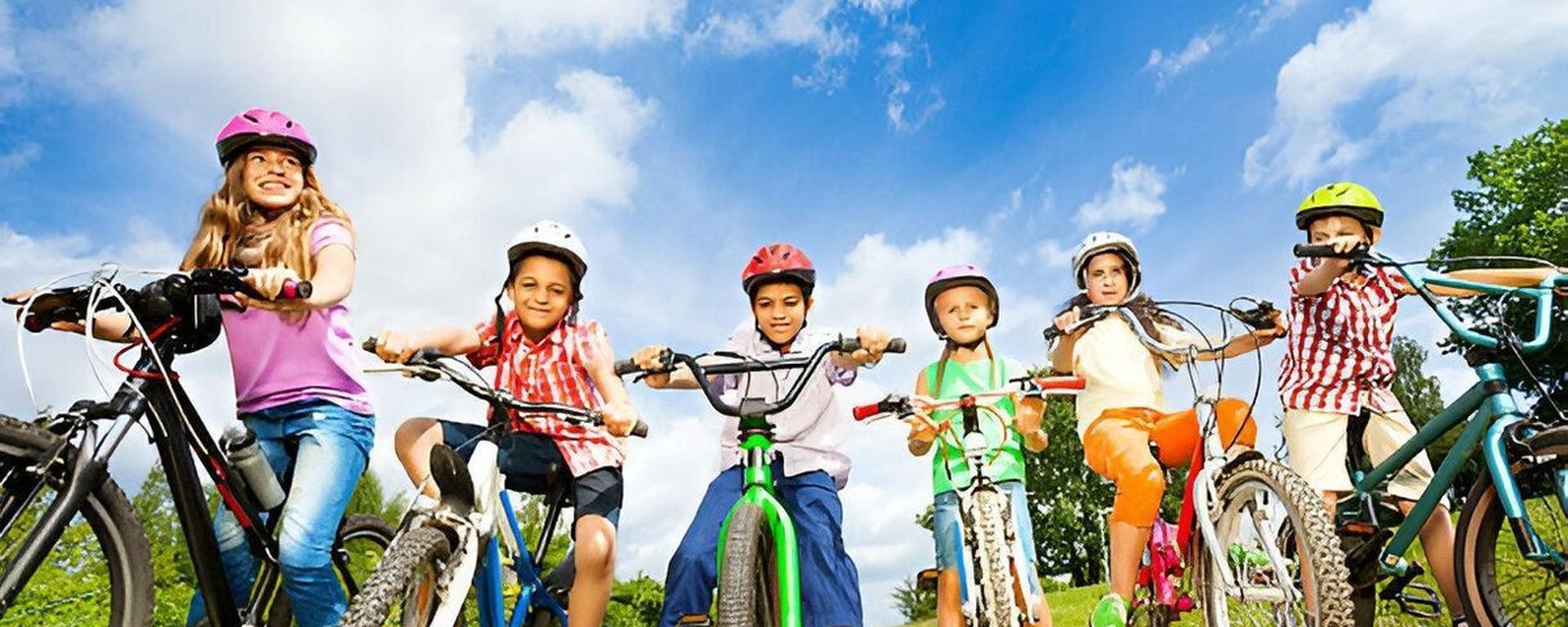 Дети катаются на велосипеде