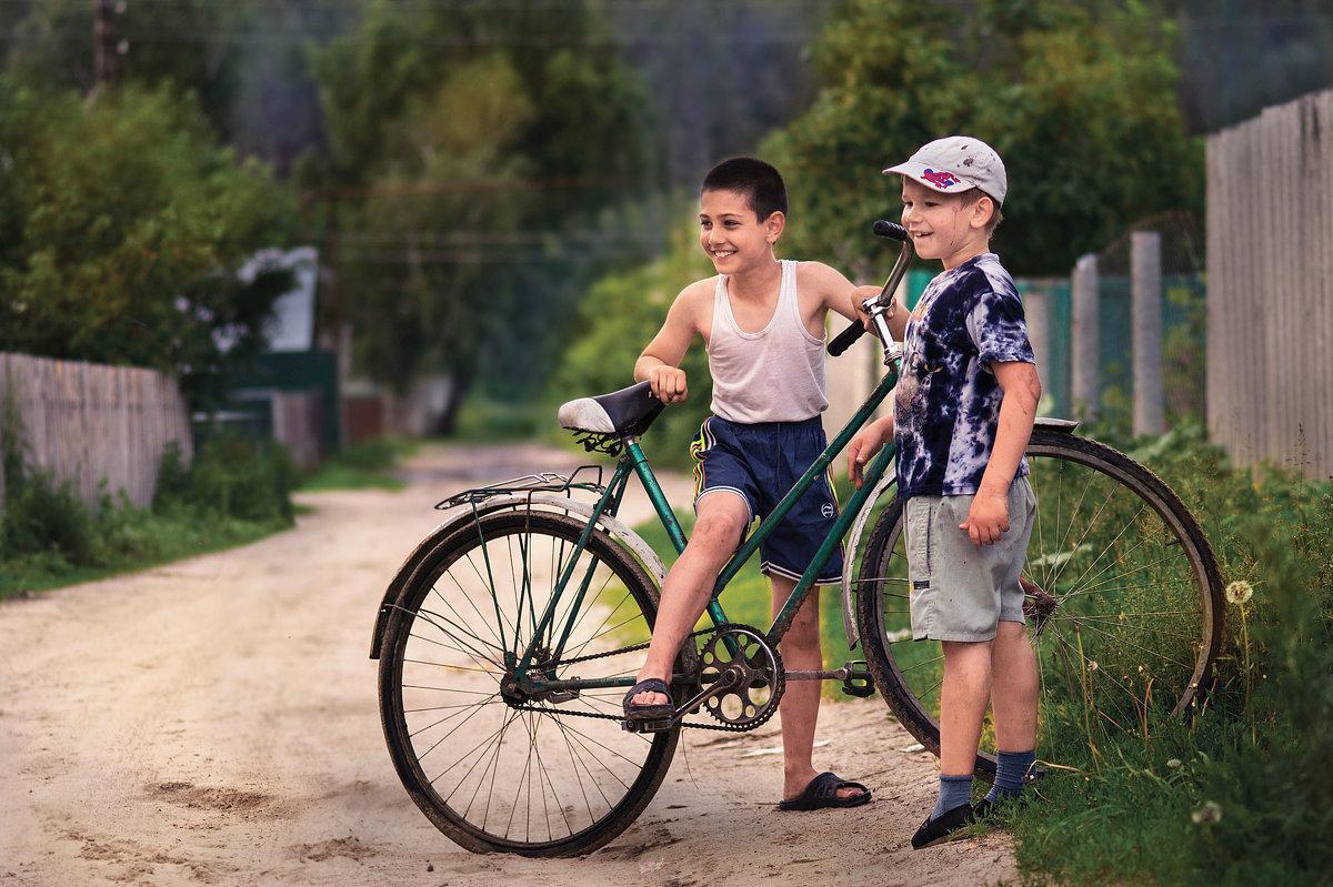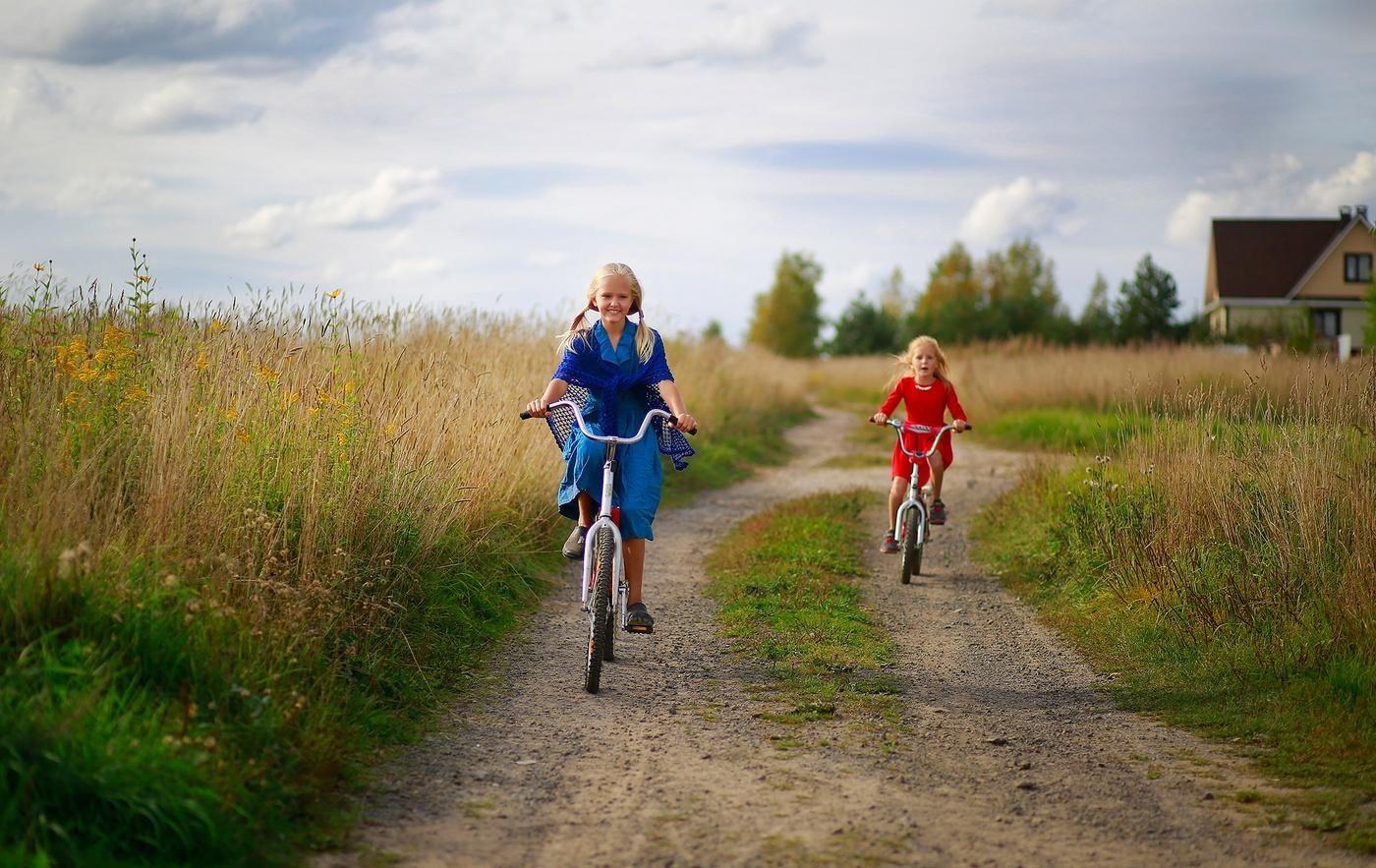 Дети на велосипедах в деревне