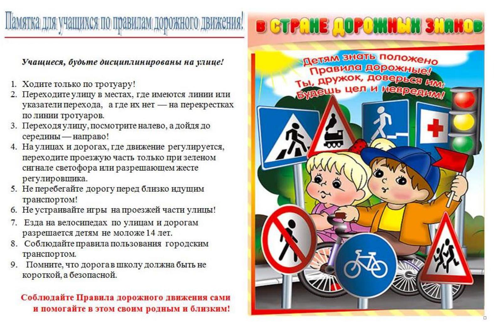 Памятки по безопасности для школьников по ПДД