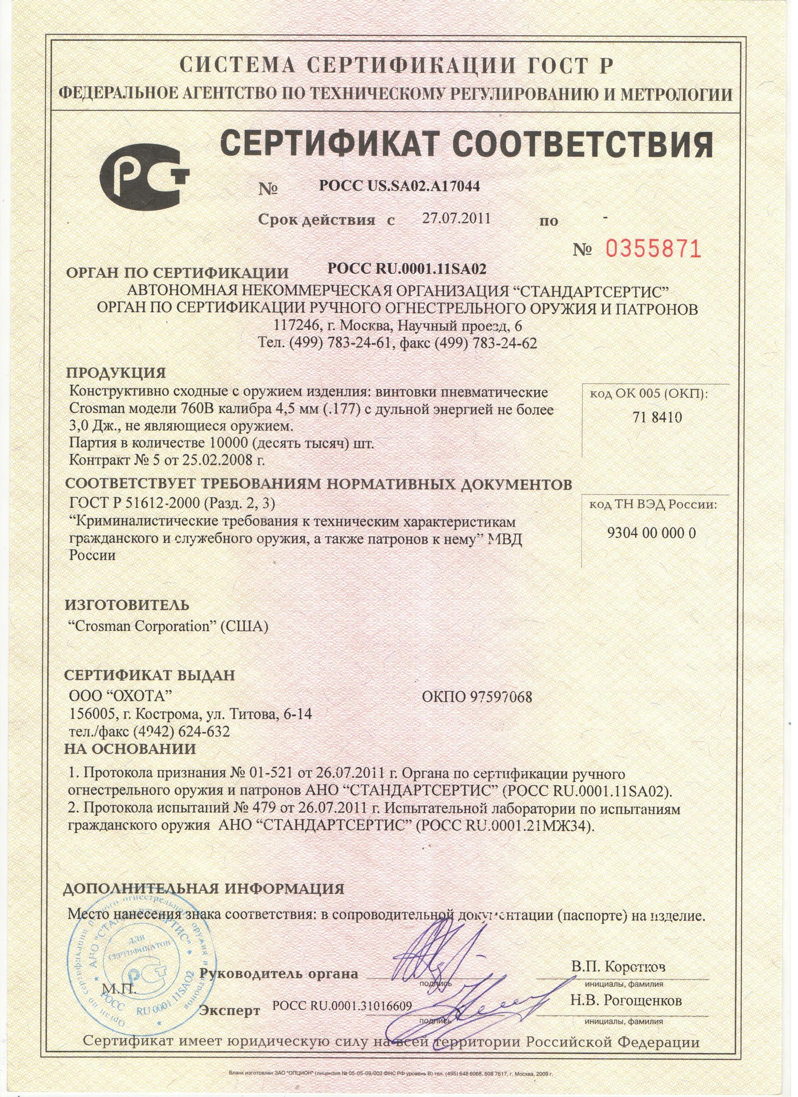 Сертификат на страйкбольный привод