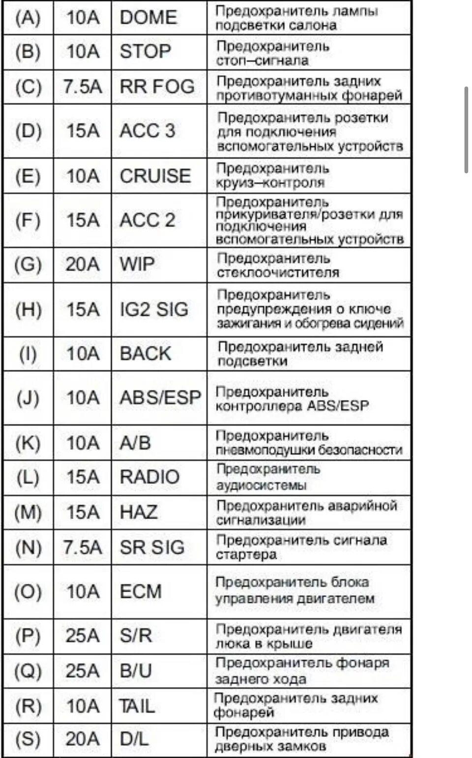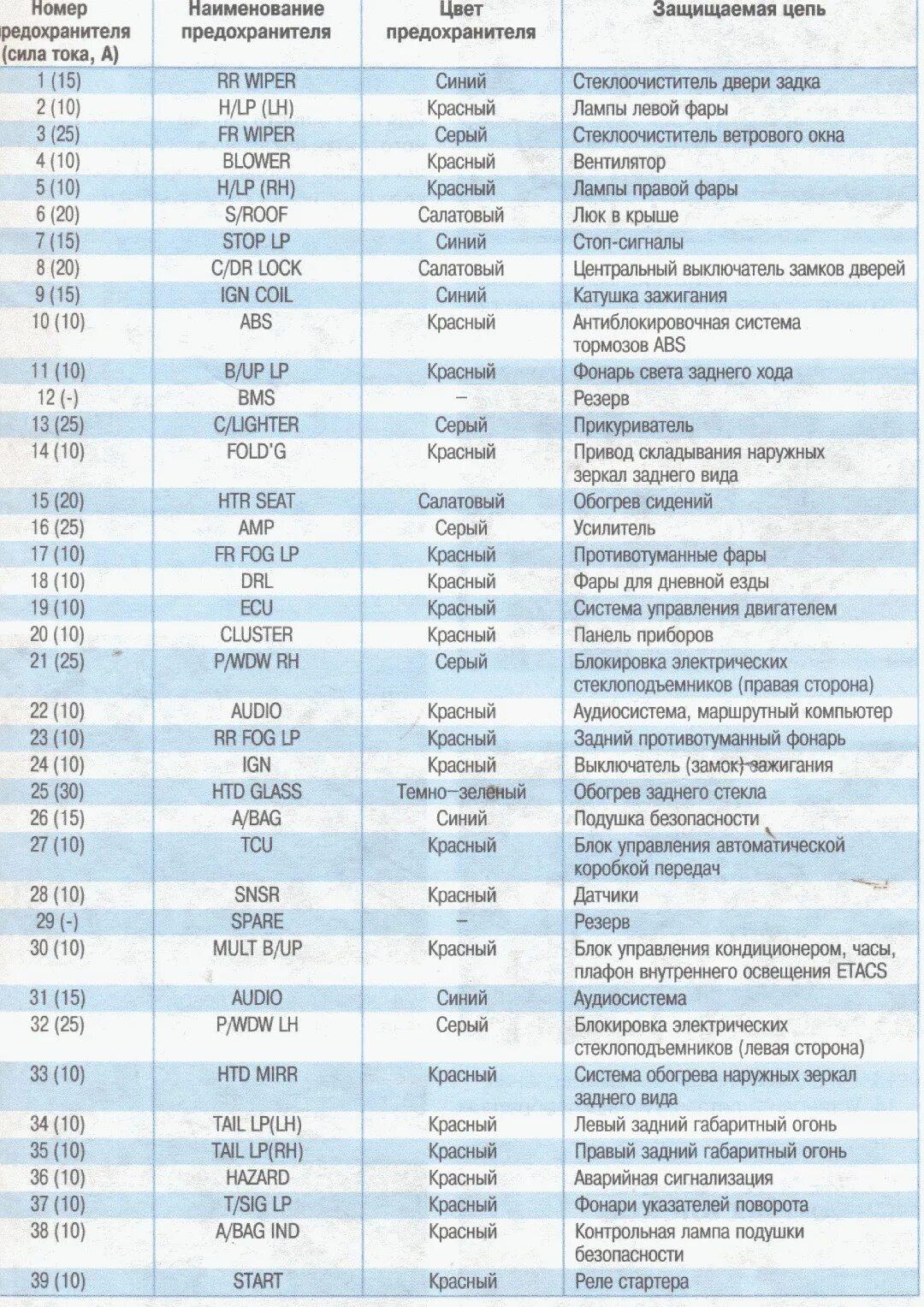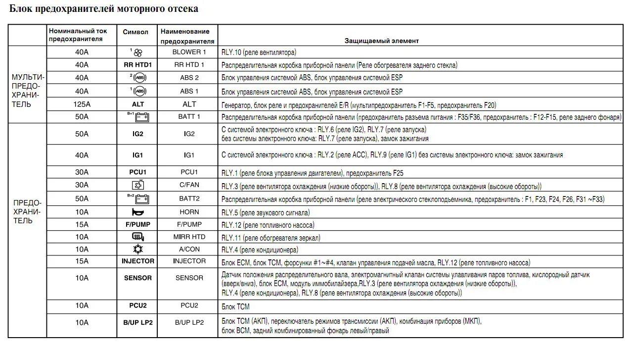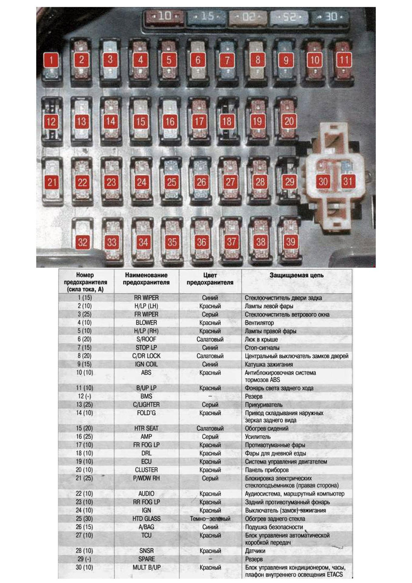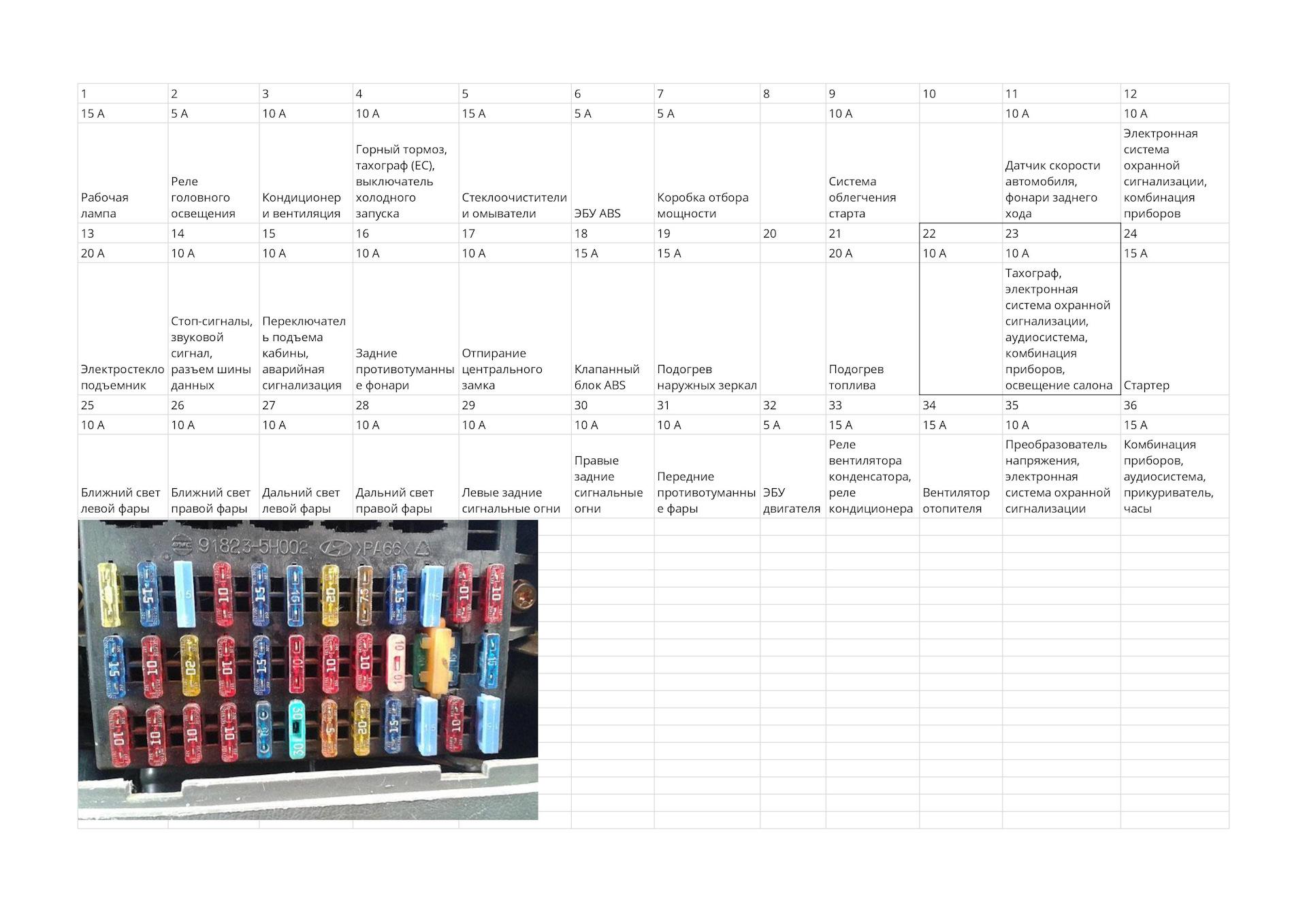 Схема блока предохранителей Hyundai Accent