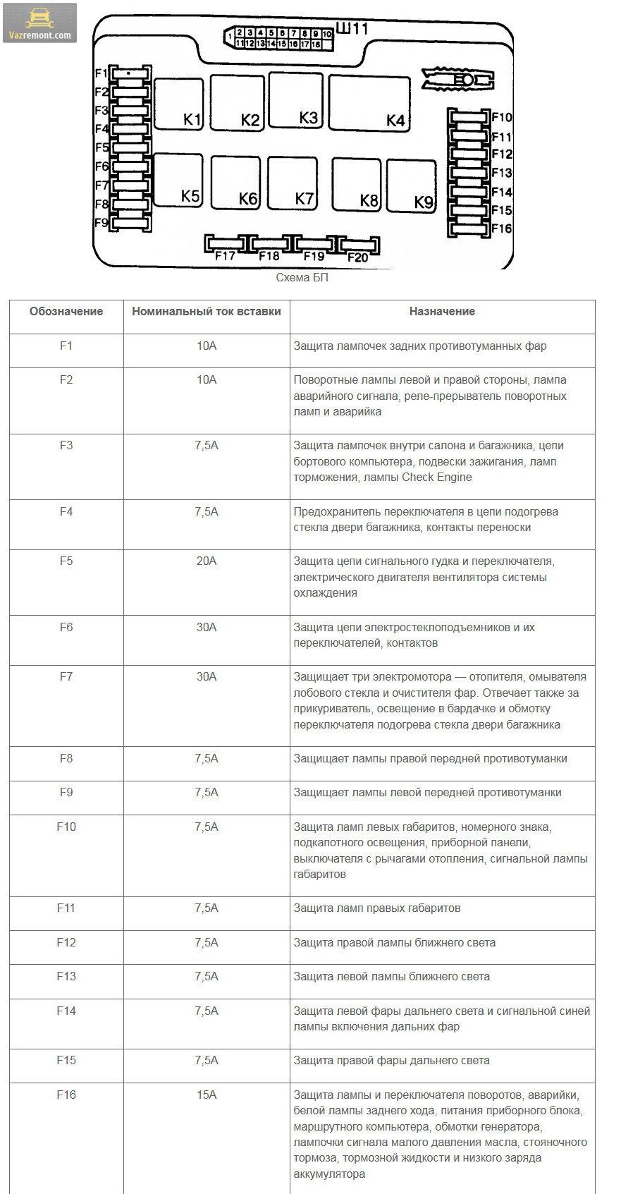 Схема блока предохранителей ВАЗ 2114