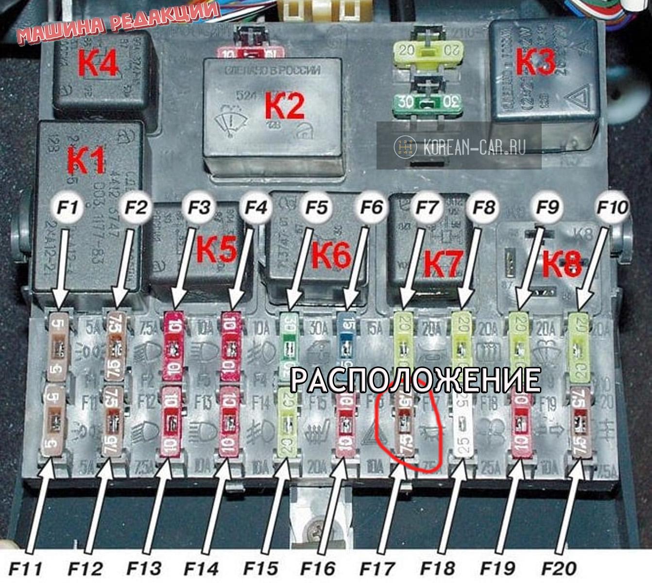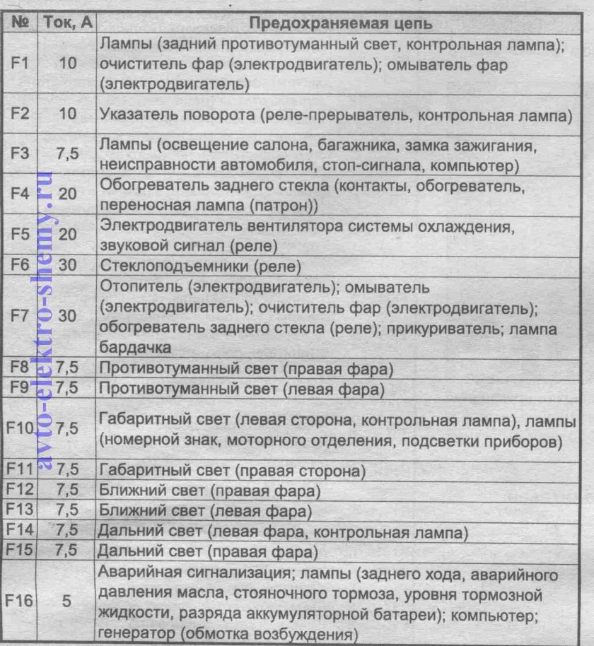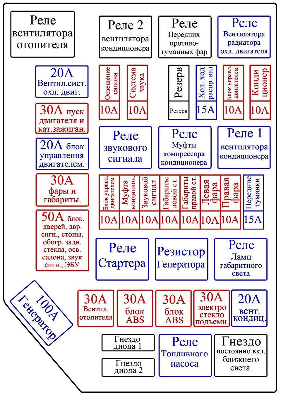 Схема предохранителей Шевроле Ланос 1.5 2008 года