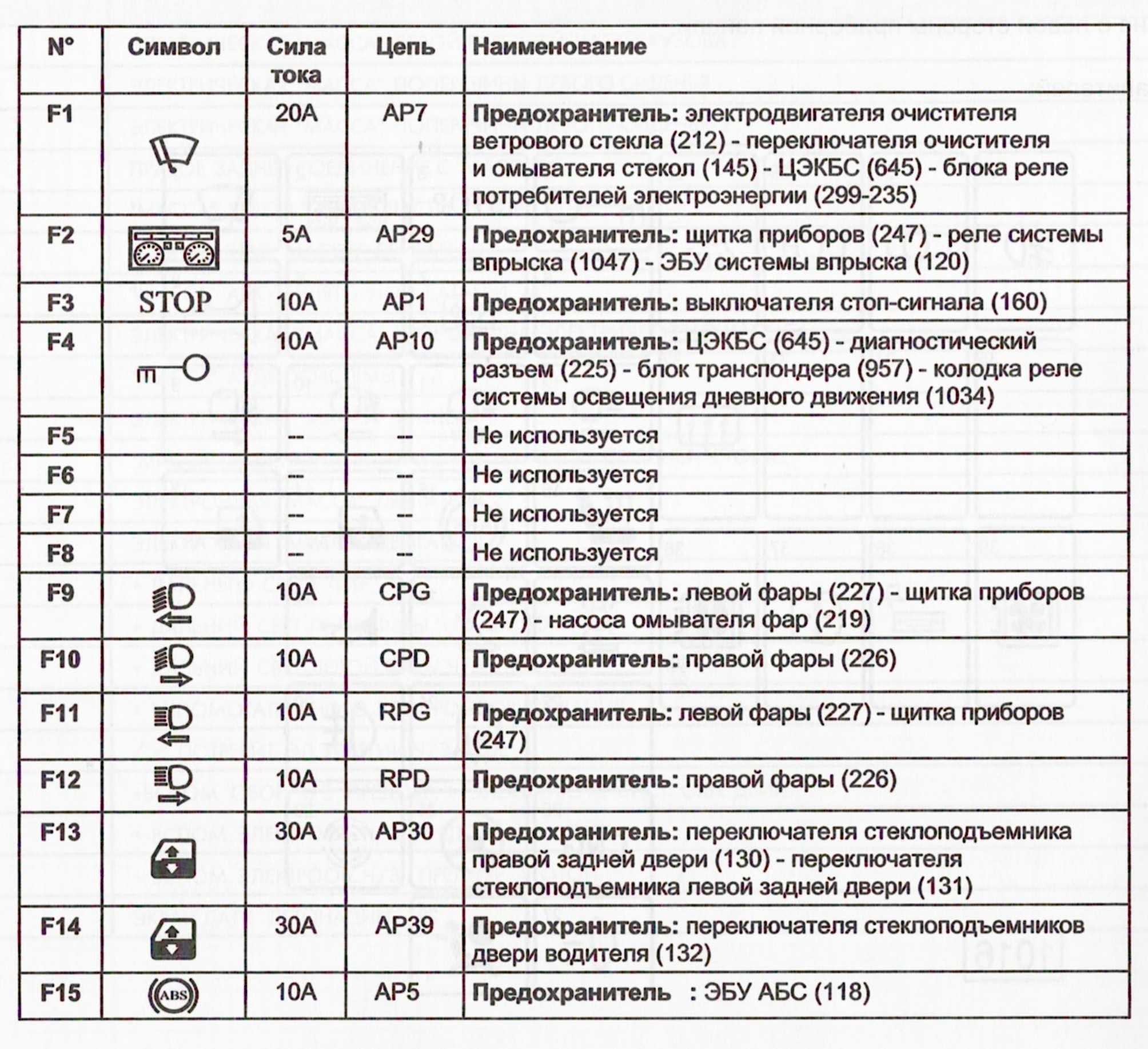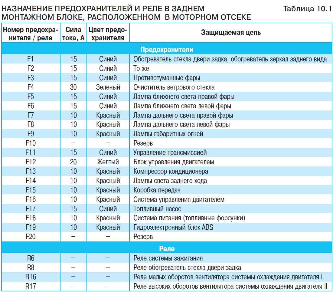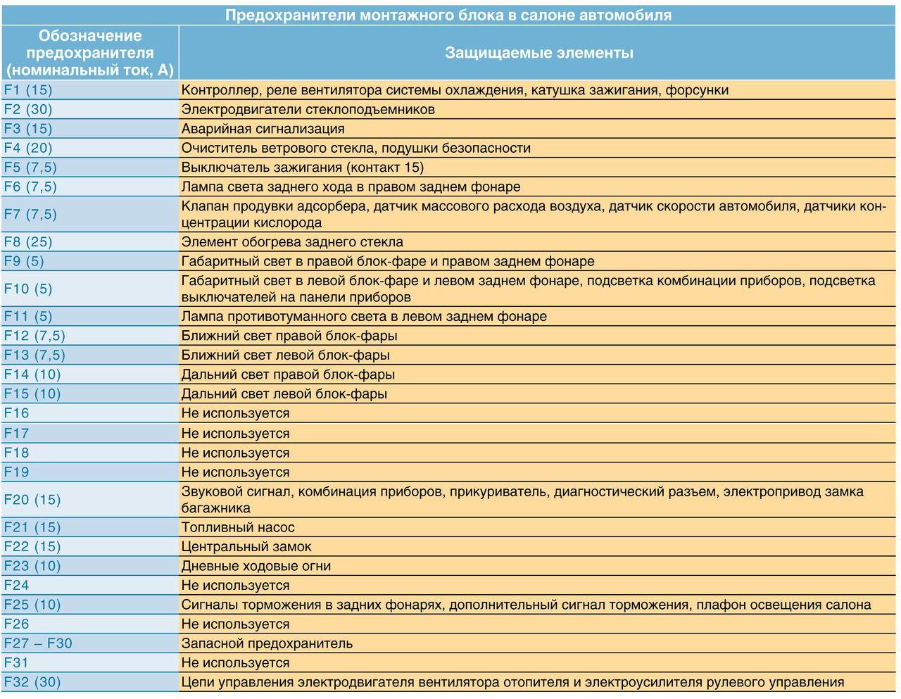 Схема предохранителей Шевроле Ланос 1.5 2008 года