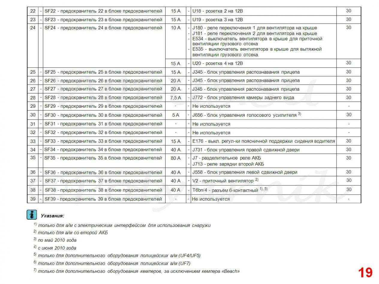 ![Схема предохранителей Фольксваген Транспортер т5 дизель]()
