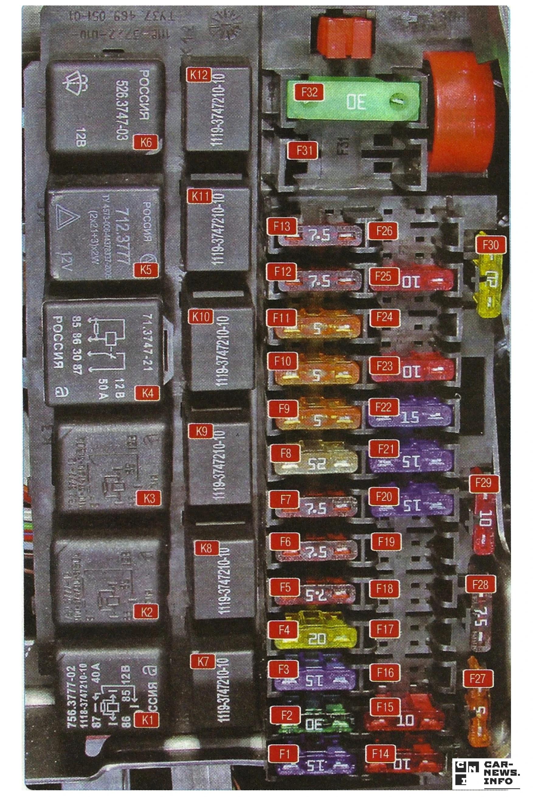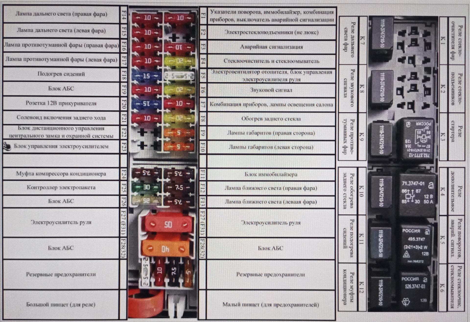 Схема предохранителей Лада Гранта 2019