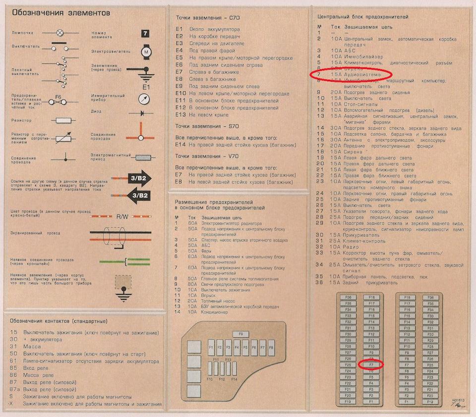 Предохранители Volvo s70