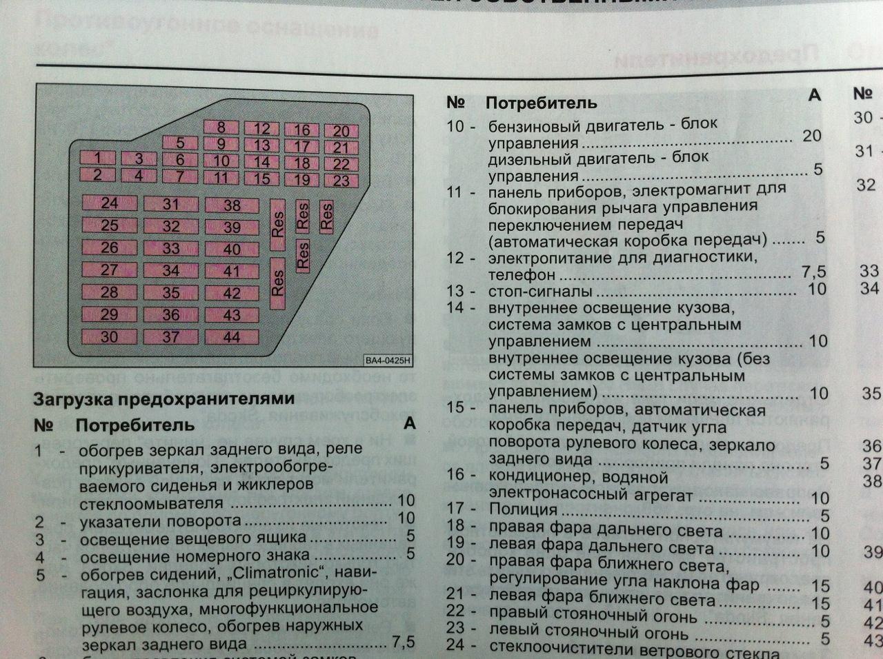 Фотография Схема предохранителей Фольксваген Транспортер т5 дизель