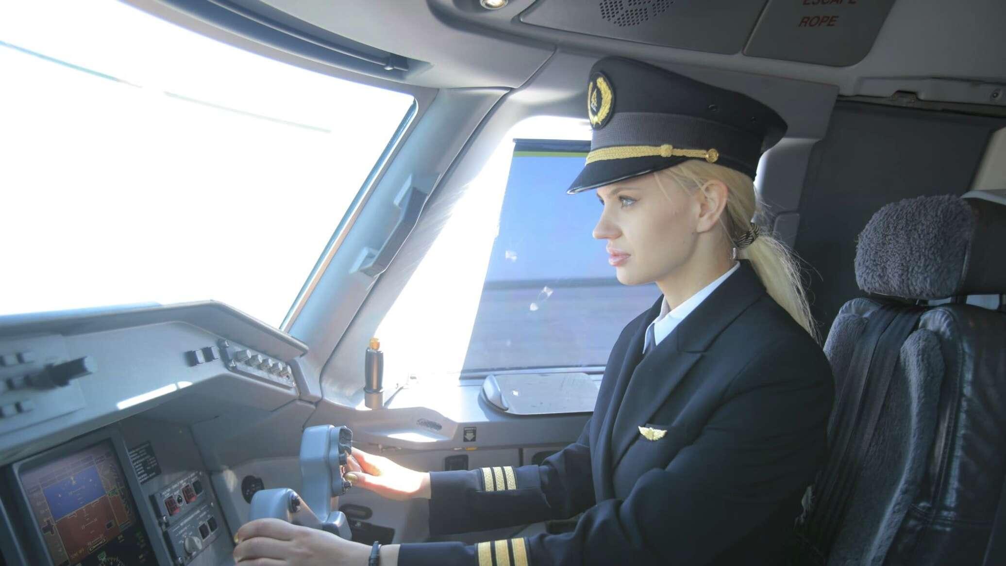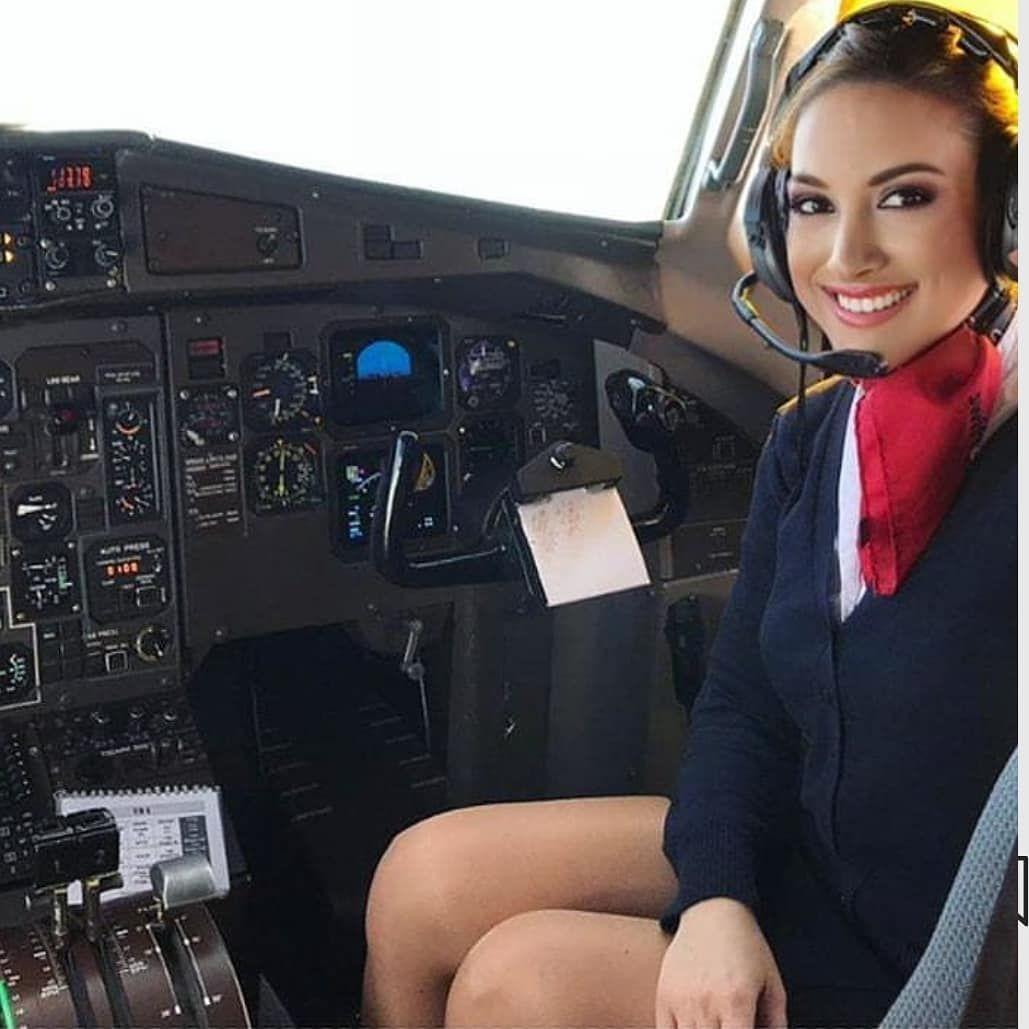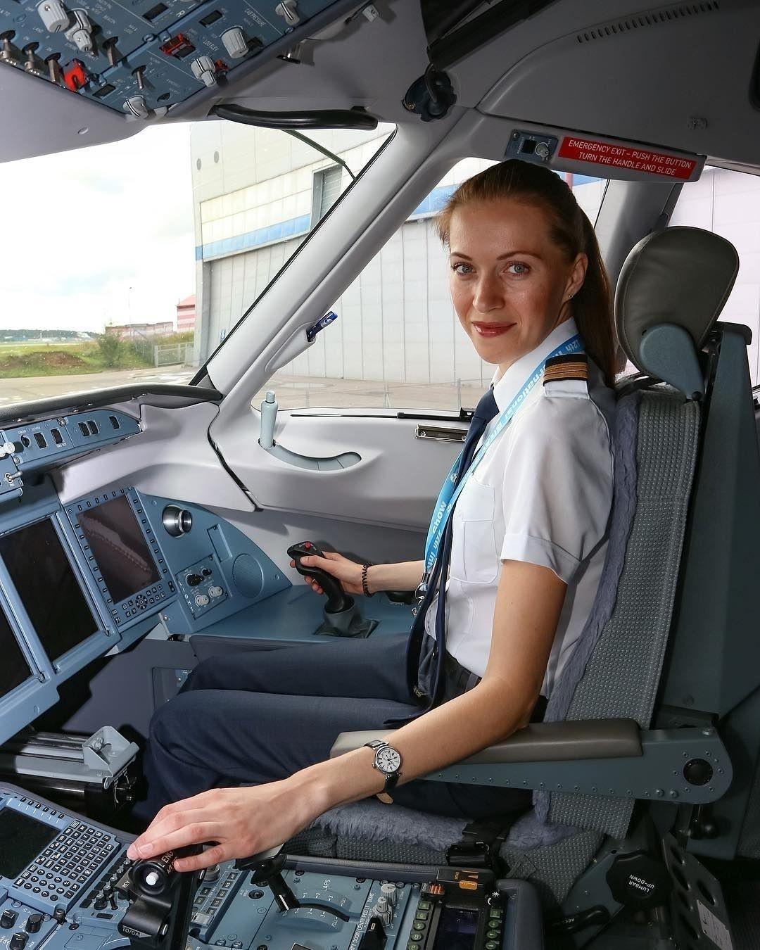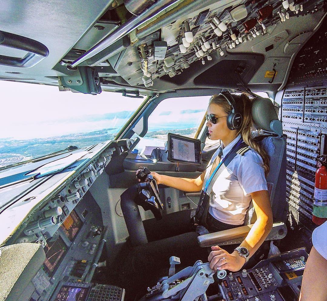 Девушка в кабине самолета